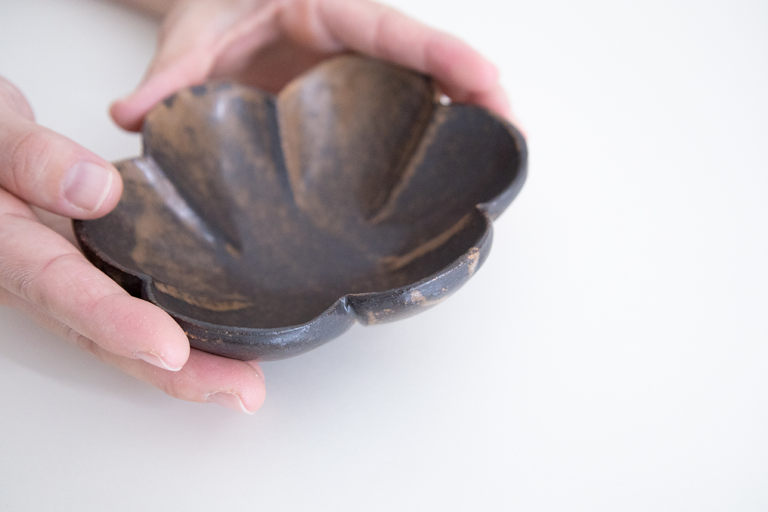 輪花の小鉢です。「柘榴(ざくろ)」の花のように6枚の花びらが可愛らしい作品です。深さ、大きさ共に扱いやすく、使いやすいサイズ感です。