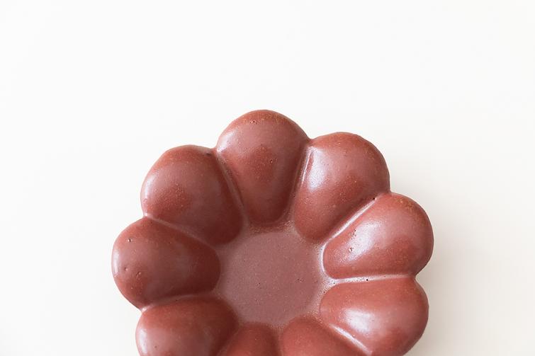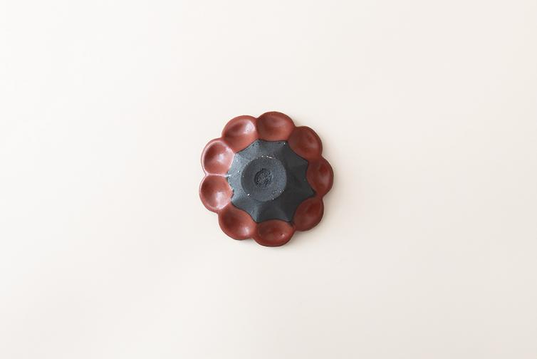 手のひらサイズの輪花豆鉢です。朱漆のような落ち着きのある上品なお色です。小さなお菓子やナッツをちょこっとのせてどうぞ。