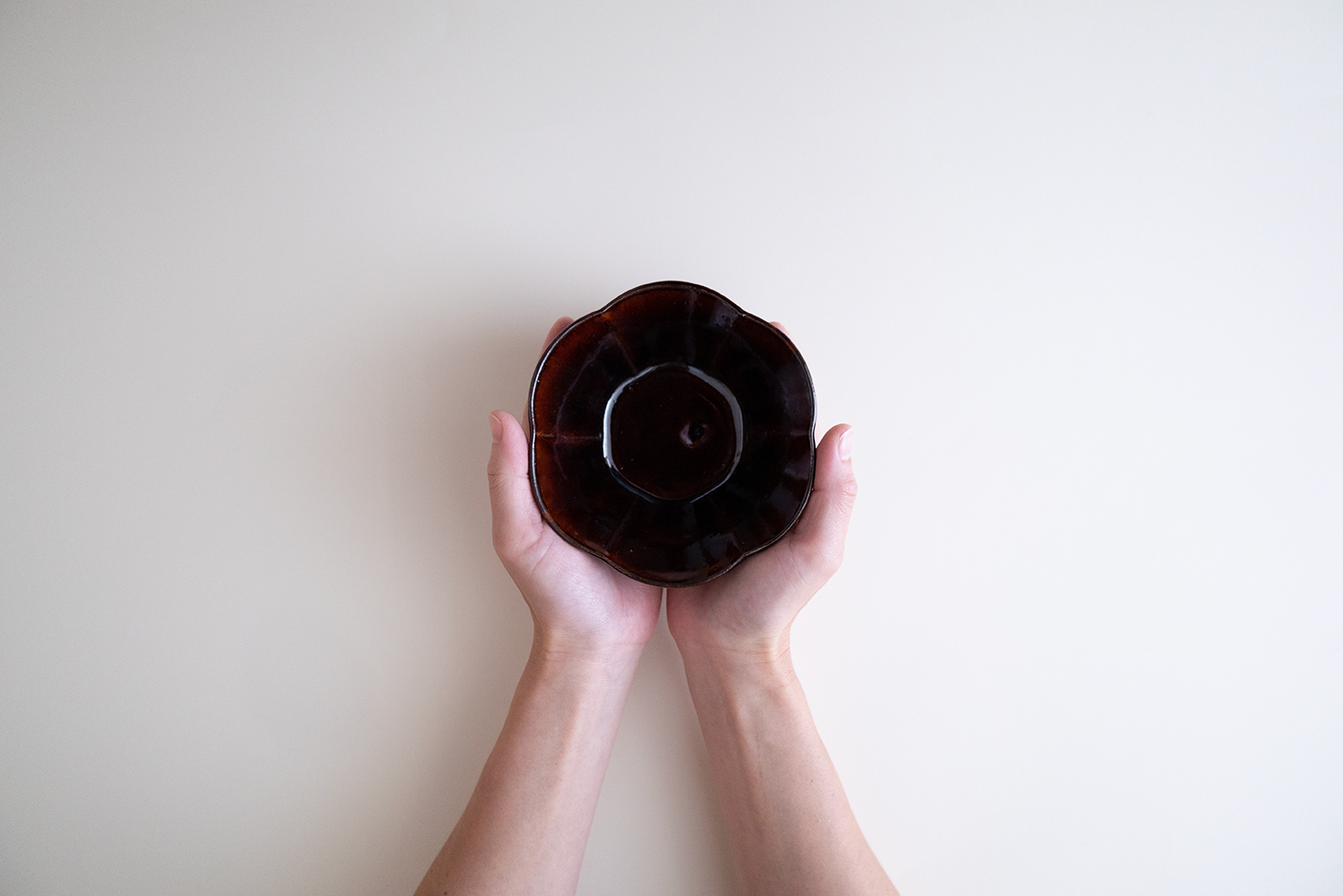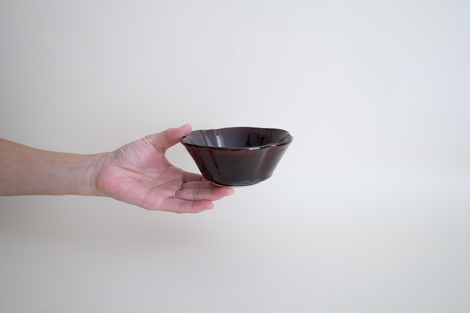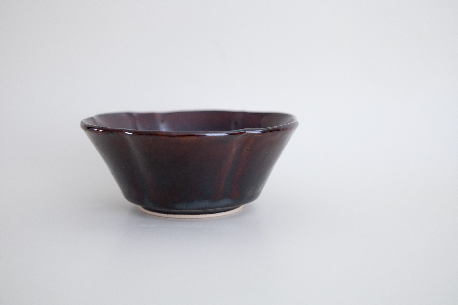 深い飴色が美しい扱いやすいサイズの小鉢です。緑の和え物がよく似合う器ですね。