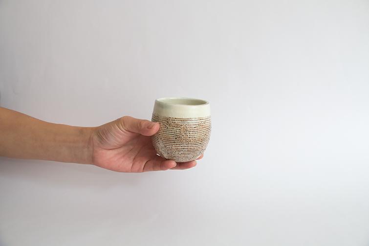 古谷さん定番の横彫タイプのエッグカップです。その名の通り卵のような形はコロンとしてかわいらしく、ぬくもりの感じられる器です。縦鉄線・ゴス線・横彫の3種類がございます。