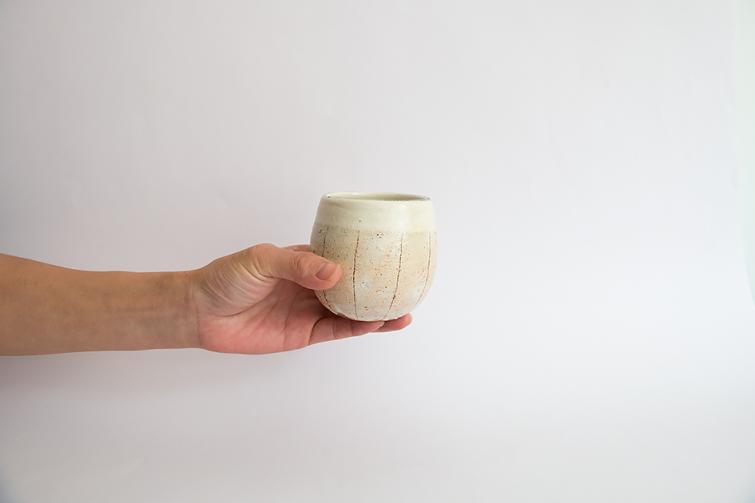 古谷さん定番の縦鉄線タイプのエッグカップです。その名の通り卵のような形はコロンとしてかわいらしく、ぬくもりの感じられる器です。縦鉄線・ゴス線・横彫の3種類がございます。
