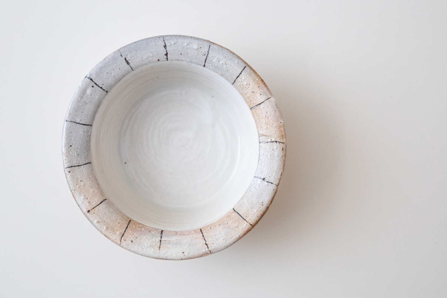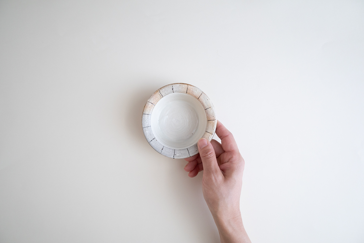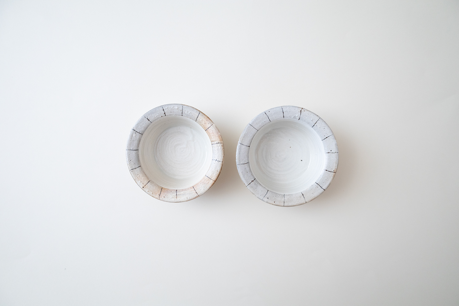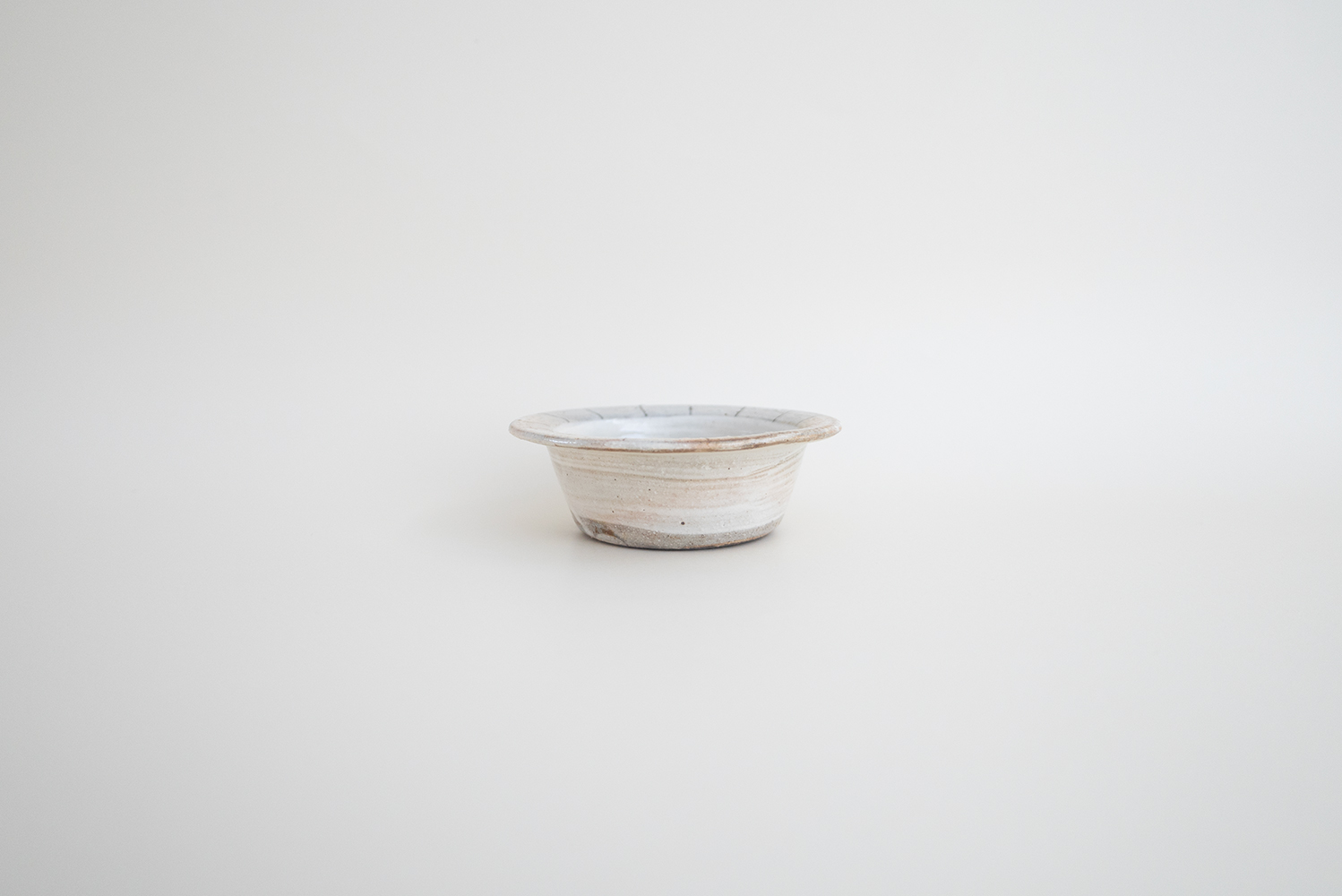 刷毛目の残る粉引の白地で、リム部分は少しグレーがかった色にやさしいタッチのラインが入っています。和洋問わず相性が良いので、お浸しや酢の物、きんぴらやマリネ、サラダに果物と我が家でも頻繁に登場するうつわです。スタッキングもバッチリなのでちょっとしたスペースに収納できるのも嬉しいですね。