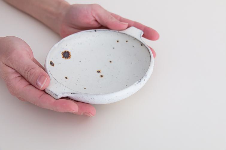 ちょこっと耳の付いた浅鉢です。使い方は幅広く、サラダボウルやスープボウルにもどうぞ。