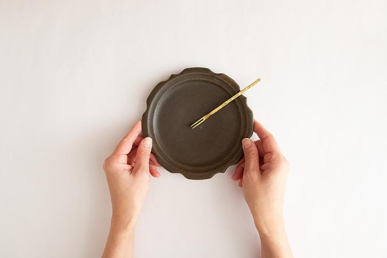 一つ一つ丁寧にお皿の周りを彫り込んでいます。洋風な雰囲気と和食器の土味が見事に調和しています。7寸・8寸の2サイズがございます。