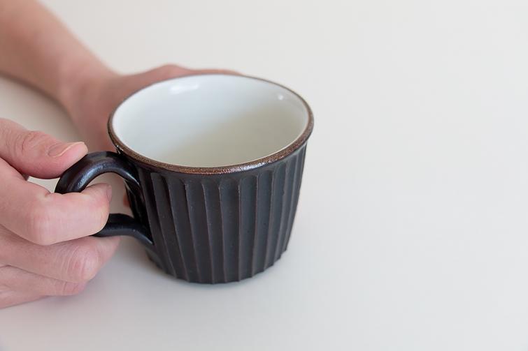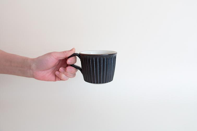 丸もいいけど、四角も素敵。すっきりとしたフォルムと鎬のラインが綺麗なマグです。色違いでペアで使ってもいいですね。