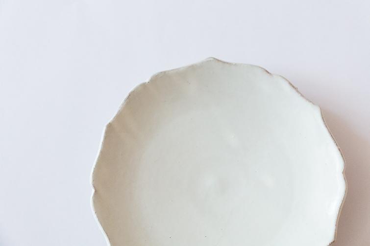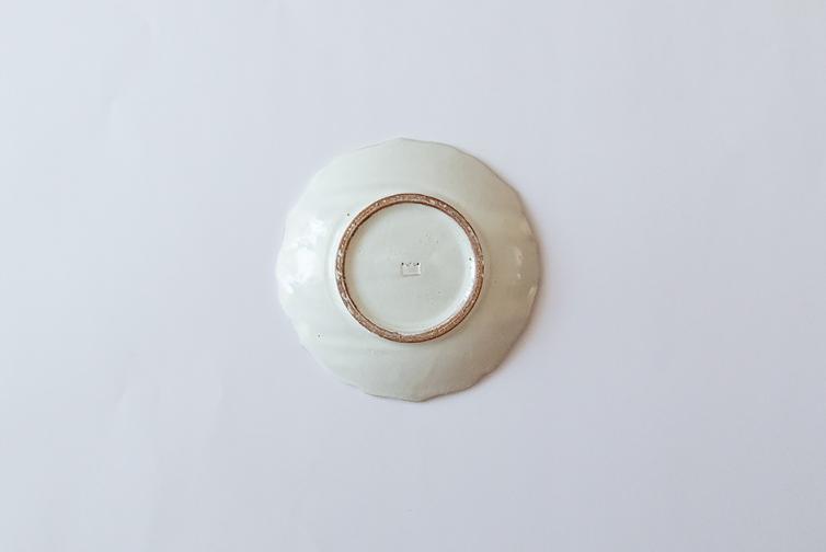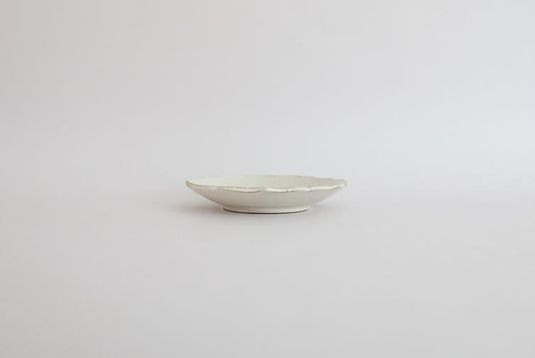 尖った花の形がとても綺麗な綾花の小皿です。艶のある粉引は柔らかな風合いです。