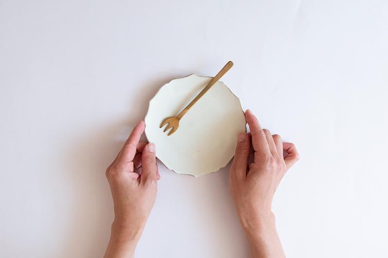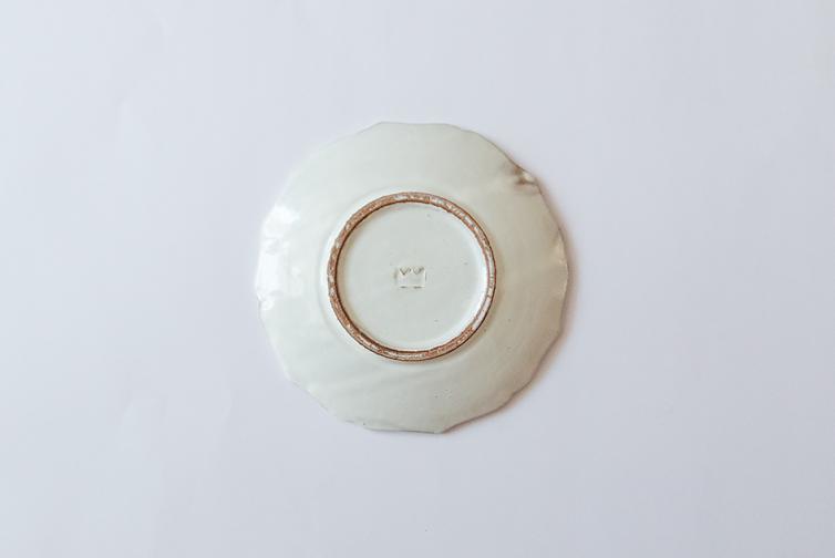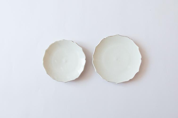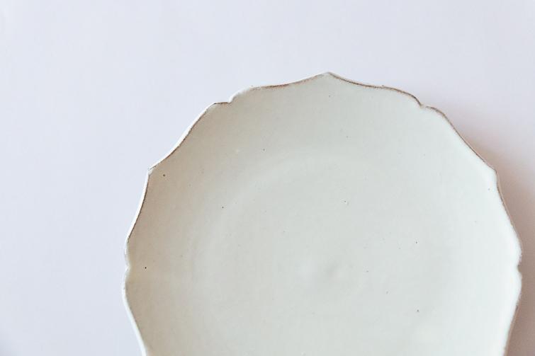 尖った花の形がとても綺麗な綾花の小皿です。艶のある粉引は柔らかな風合いです。