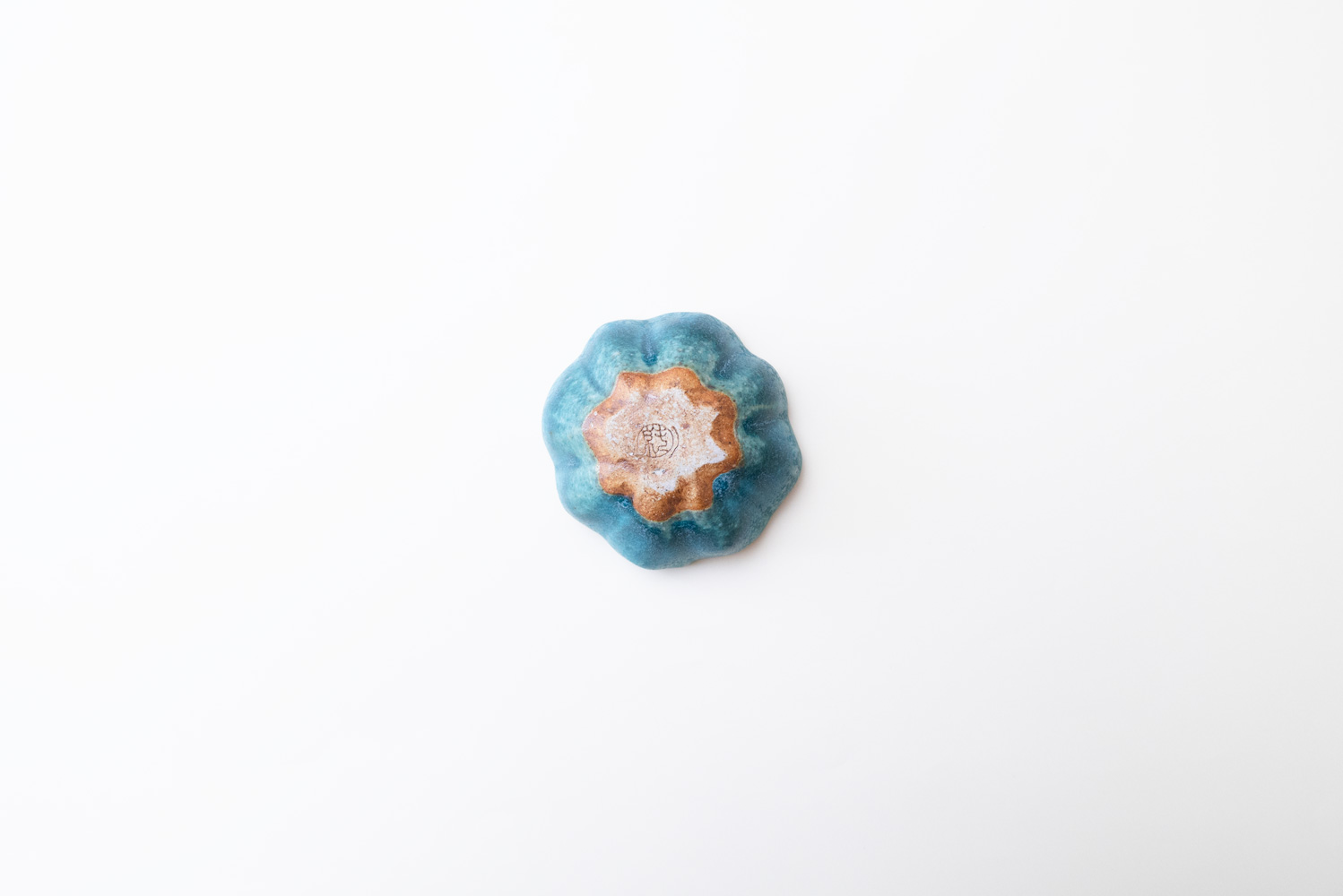 手のひらサイズの花形のお湯のみです。また豆鉢としてもどうぞ。