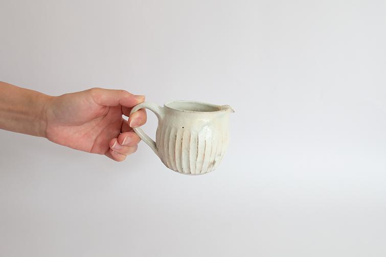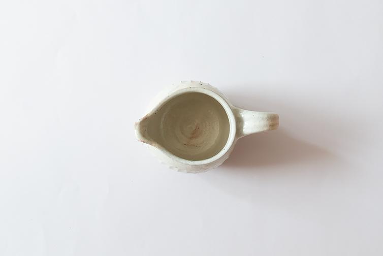 ふっくらと丸味のある形が可愛らしいマグカップサイズのピッチャーです。ピッチャーとしてはもちろん、小さな花器としてもお使いいただけます。