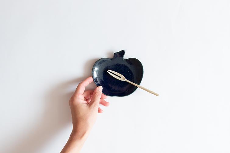 定番のリンゴ皿に瑠璃色が追加しました。小さなお菓子をのせたり、小さめの取り皿としてもお使いいただけます。