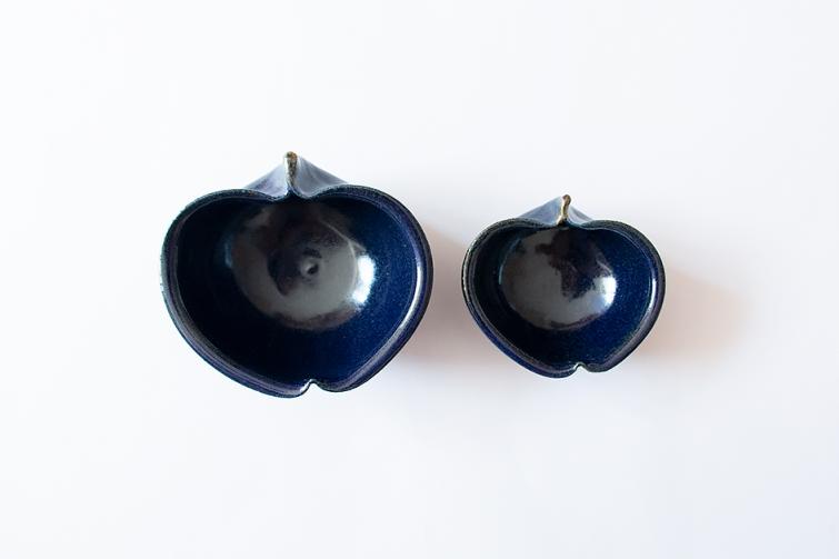 りんご小鉢に瑠璃色が追加しました。自然光ではキラキラと青色が輝いて見えます。