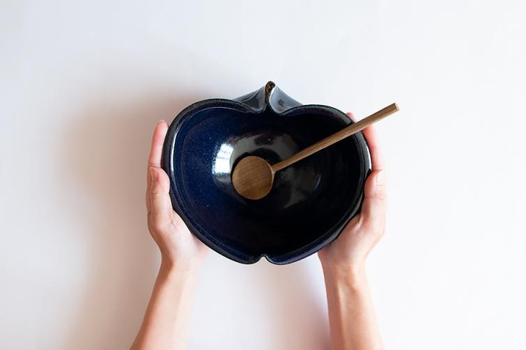 りんご鉢の中サイズです。大きめの鉢なのでカレー皿や盛り鉢としてお使いいただけます。菓子鉢にしてもかわいいですね。