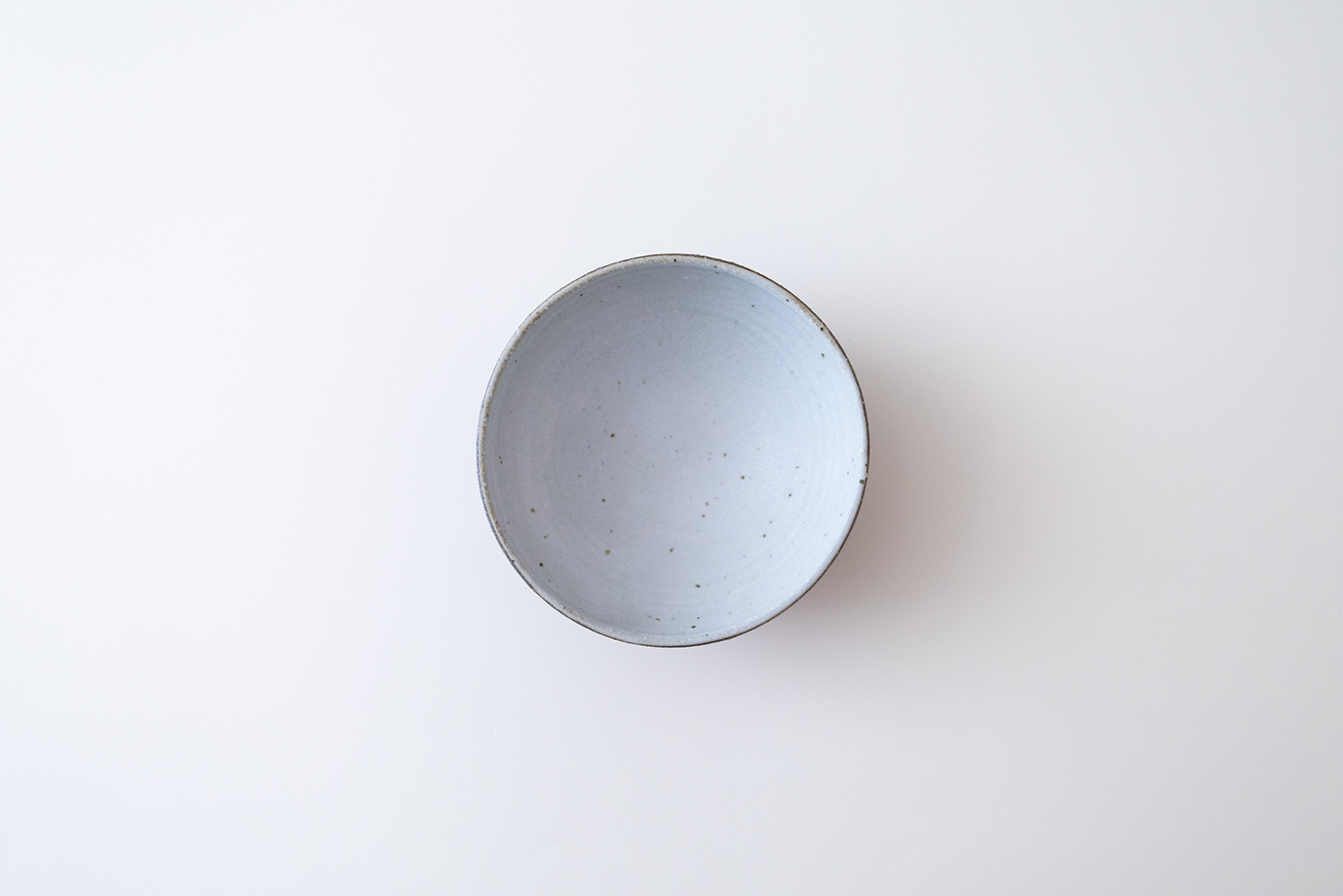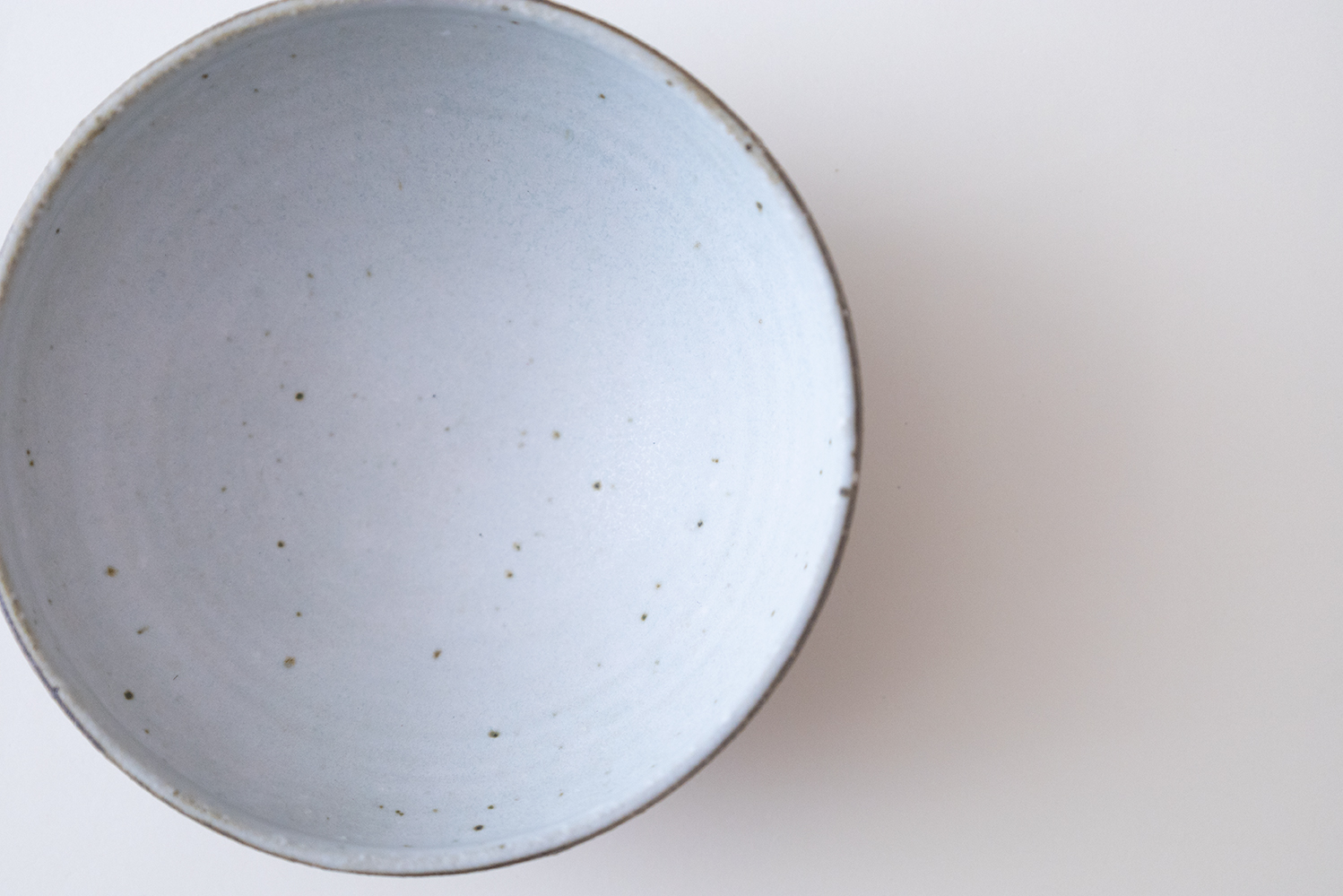 白と褐色の斑点が散りばめられた淡い水色。主張しすぎないけれど存在感のある絶妙な配色です。そして形、大きさも扱いやすくマグカップに続き我が家の一軍の器となっています。