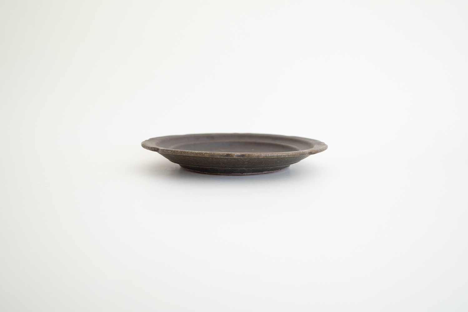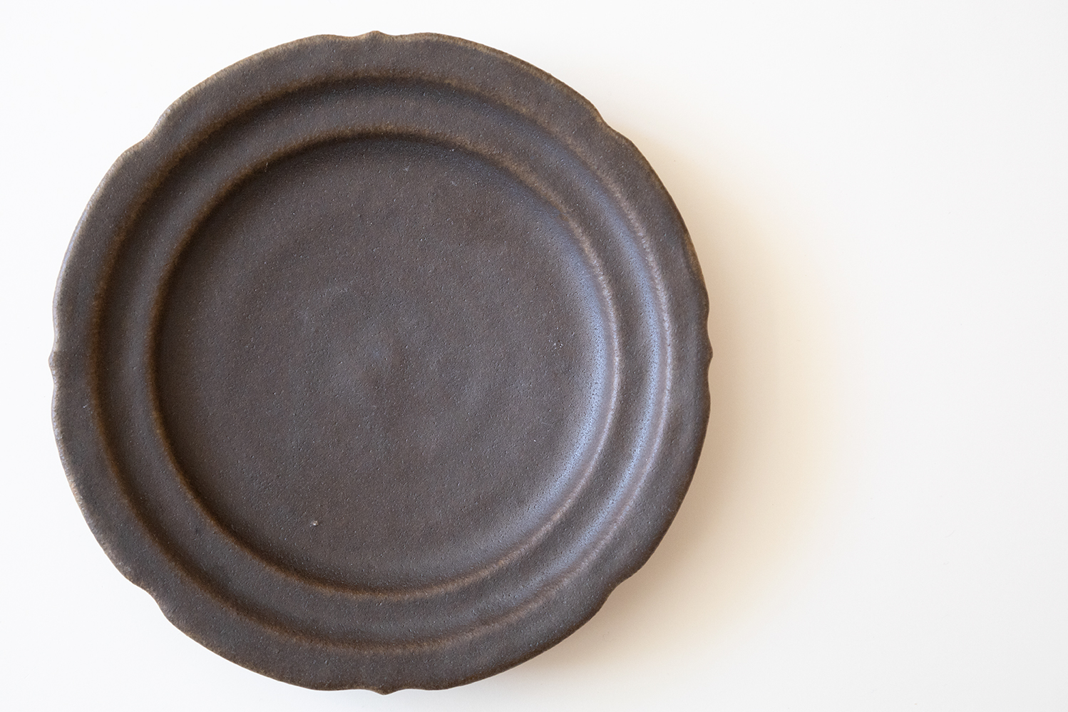 一つ一つ丁寧にお皿の周りを彫り込んでいます。洋風な雰囲気と和食器の土味が見事に調和しています。