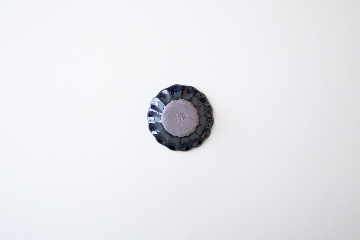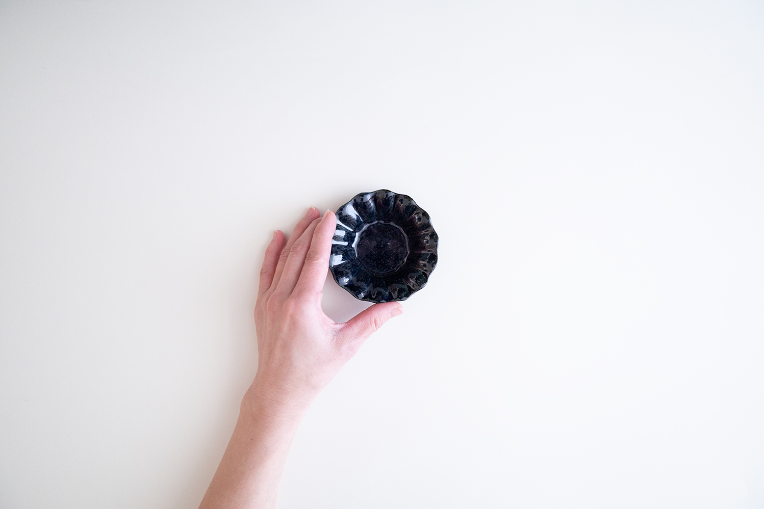 ふっくらとした花弁の輪花皿です。豆皿や豆鉢のようにもお使いいただけます。我が家では醤油皿として使っています。
