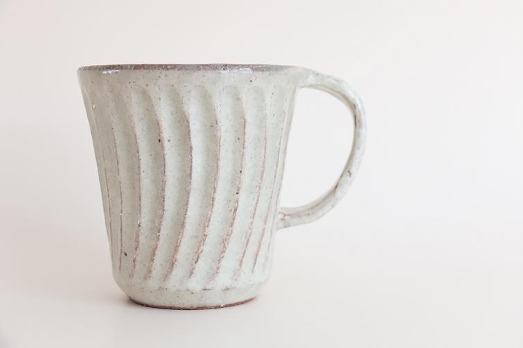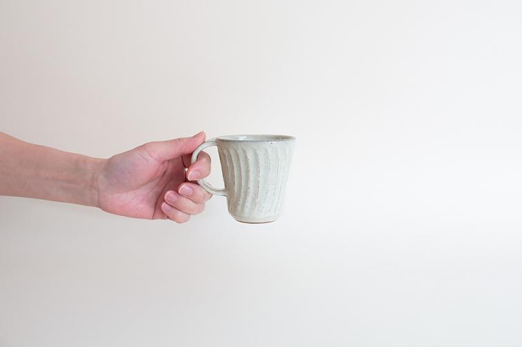 スタイリッシュな細身のシルエットと緩やかな曲線のしのぎが美しいコーヒーカップです。