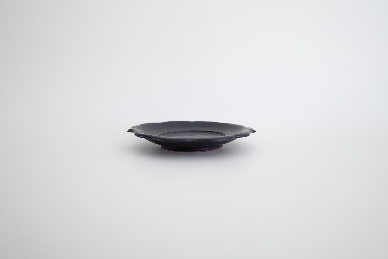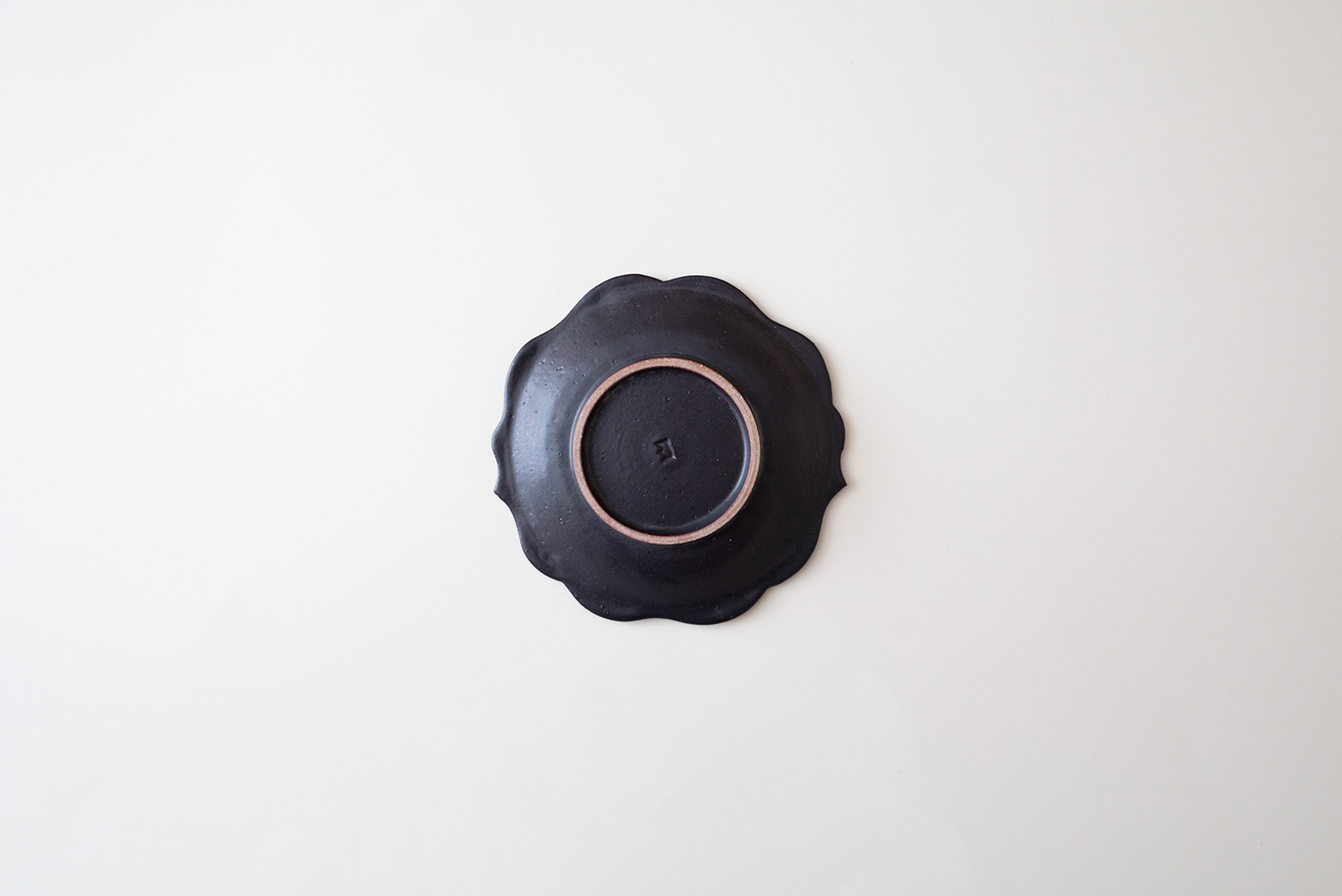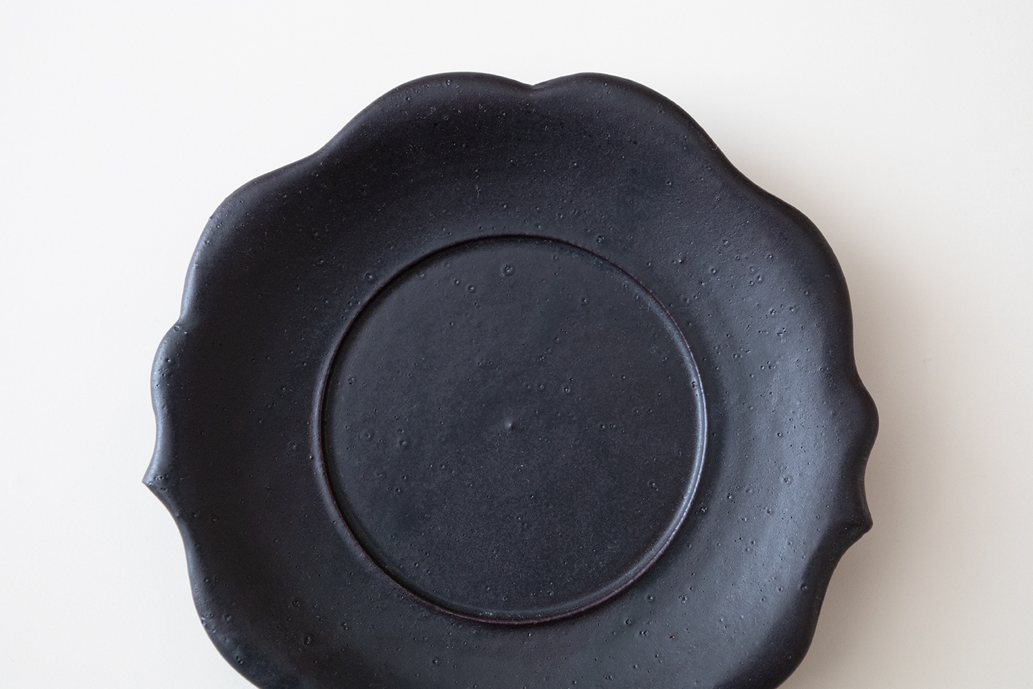 ふんわりとした柔らかな形の輪花のお皿です。2箇所ある尖りが柔らかすぎず、落ち着きある佇まいを感じさせます。