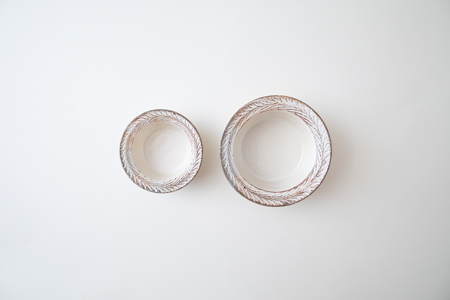 古谷さんの定番のリム豆鉢シリーズに新しくリーフしのぎのタイプが新登場です。しのぎ模様がとても良いアクセントになっています。