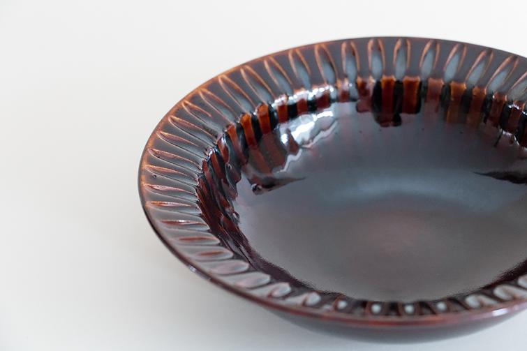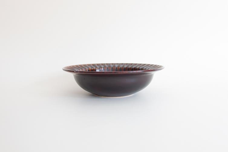 リムから内側に落ちるシノギが美しいスープボウルです。少し小さめの中鉢、盛り鉢のようにもお使いいただけます。