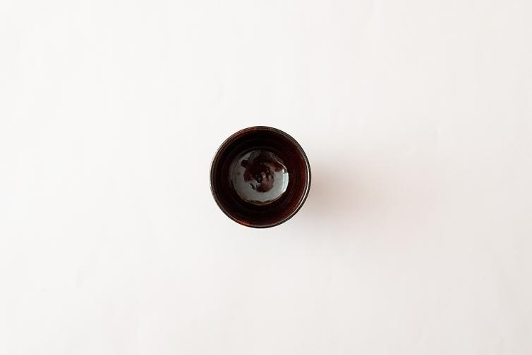 宇田康介さん作 飴釉 高杯です。艶のある飴色に注いだ日本酒が光にあたるとキラキラしてとても美しいです。上品なシルエットなので先付のうつわとしても。