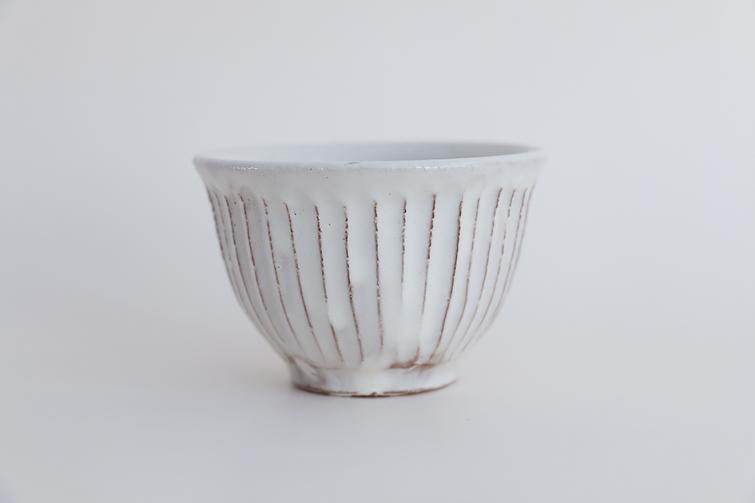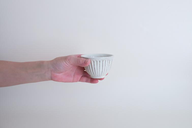 シンプルな粉引のしのぎ汲み出しです。しっとりと手に馴染む持ち味です。