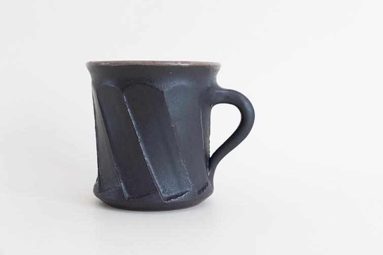 螺旋状のしのぎが美しいコーヒーカップです。少し広がった口元も飲み心地の良さを感じられます。