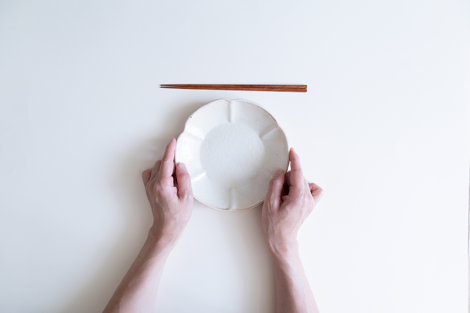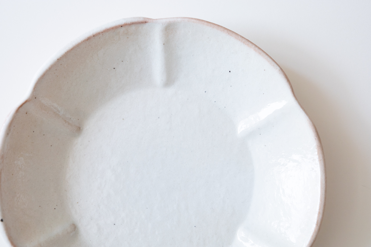 輪花浅鉢の小さいサイズのお皿です。しっかりと高さがあるので汁気の多いものでも大丈夫です。