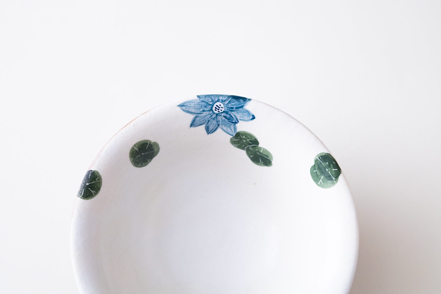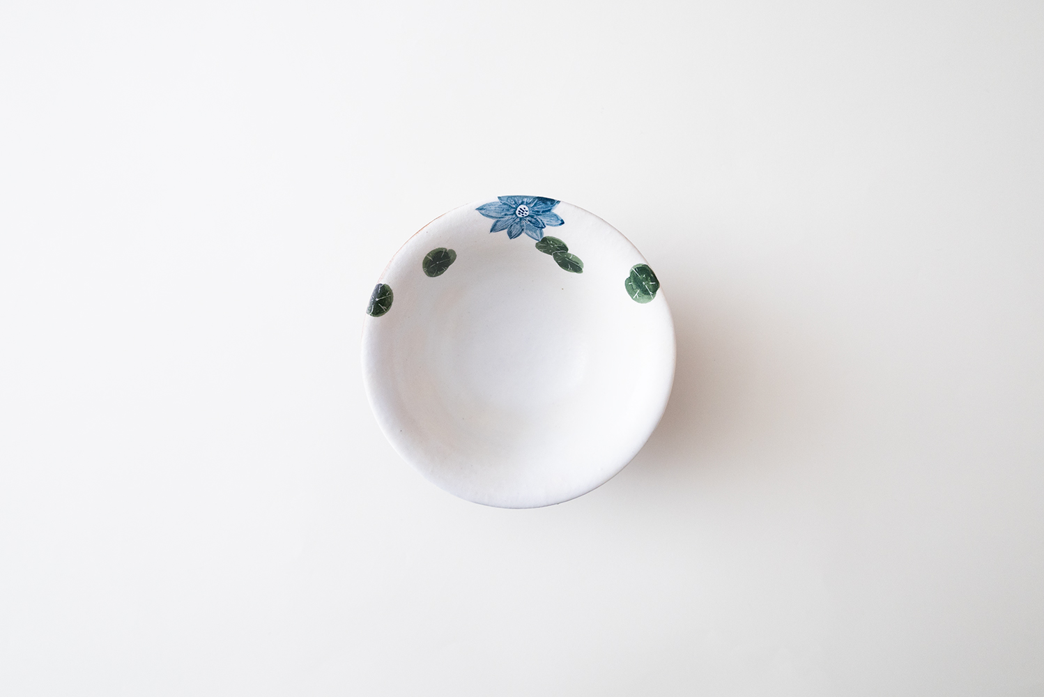 水面に浮かぶ水草が描かれた少し浅い目の飯碗です。ご飯をふんわりと綺麗に盛り付けられます。