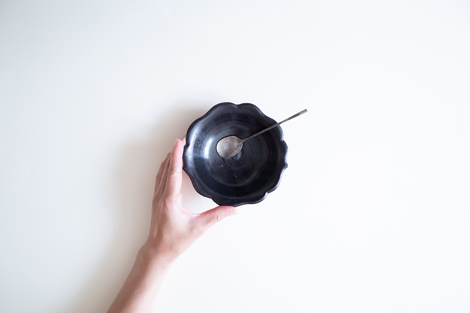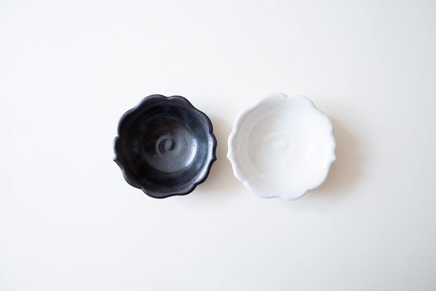 ふんわりとした柔らかな形の輪花の小鉢です。2箇所ある尖りが柔らかすぎず、落ち着きある佇まいを感じさせます。サラダボウルや副菜など使う頻度が多いサイズです。