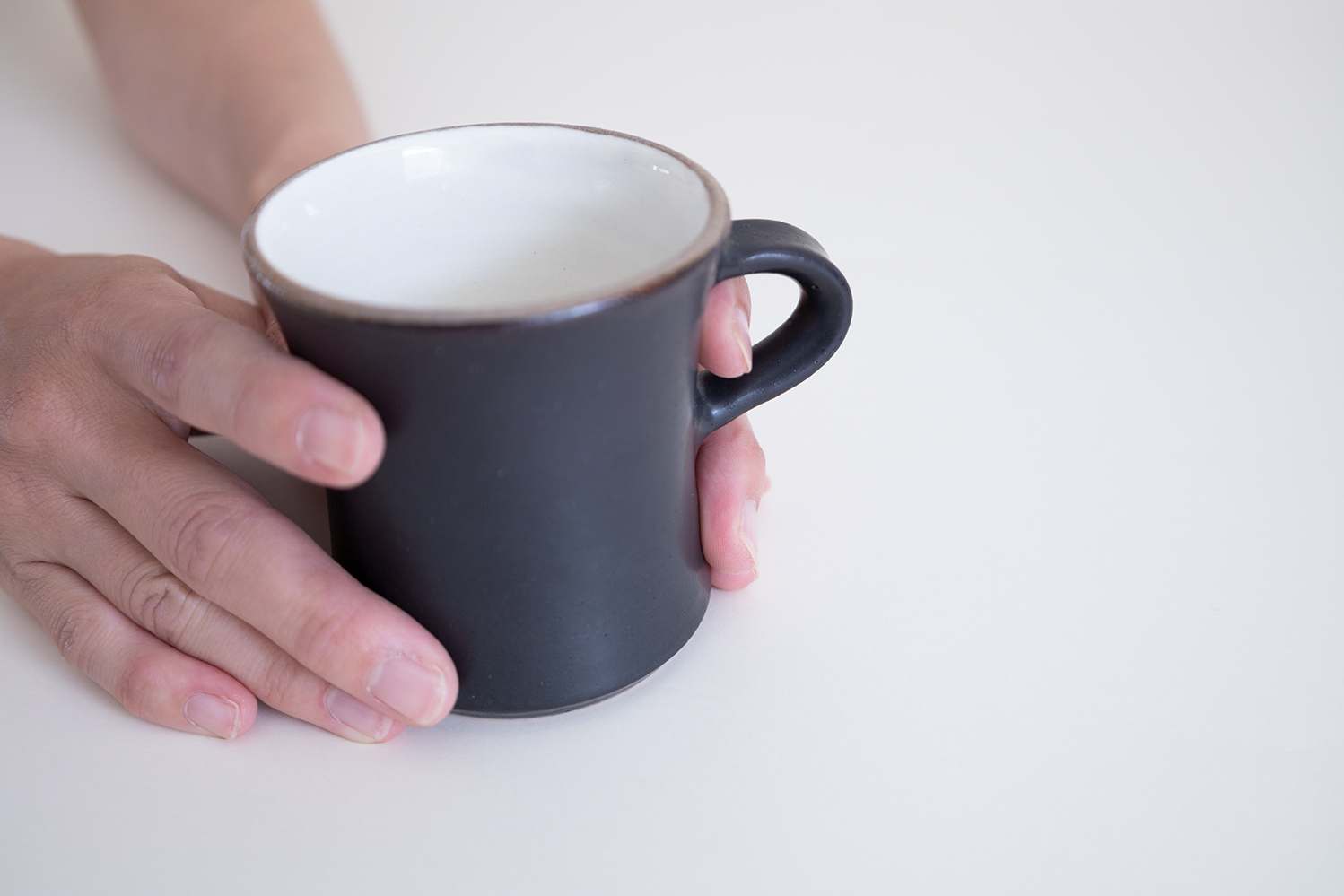 鼓型のマグカップです。滑らかな触り心地と丁寧な手仕事がよく伝わる作品です。