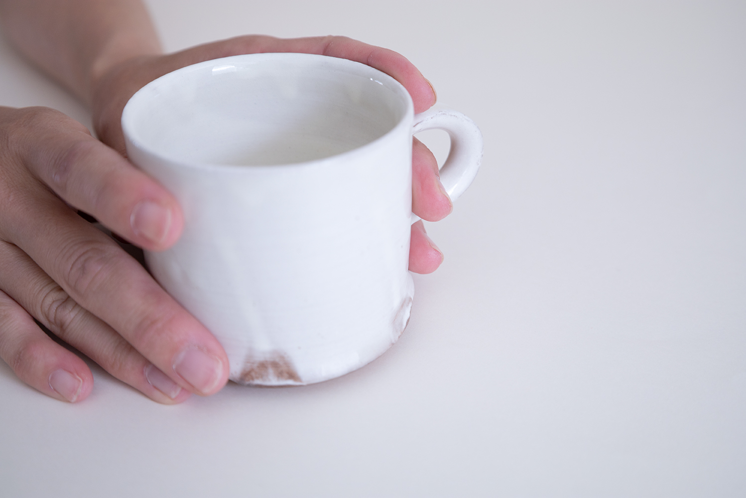安定感のある下の方が少し大きくなっているマグカップです。持ち上げてみると下部に重量感があるので安心感があります。裾野部分が大きなフリルのようになっているところも可愛いですね。