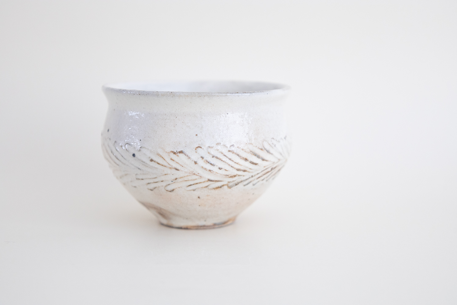すらりとしたフォルムのフリーカップです。お茶やコーヒーにどうぞ。リーフしのぎのラインが入ることでスタイリッシュに仕上がっています。