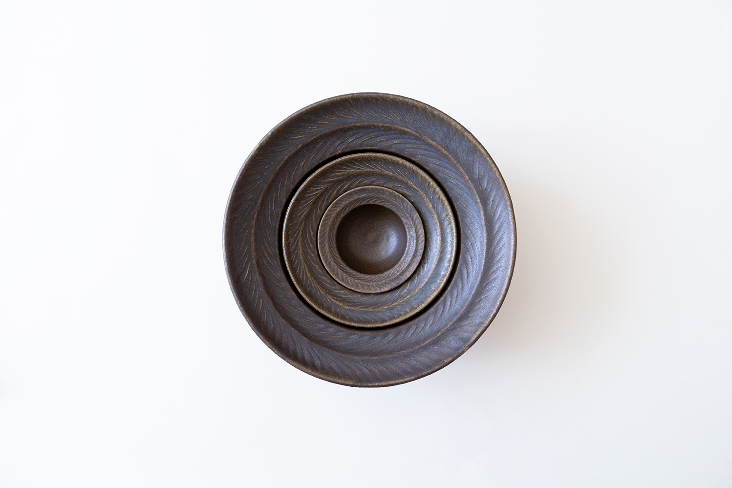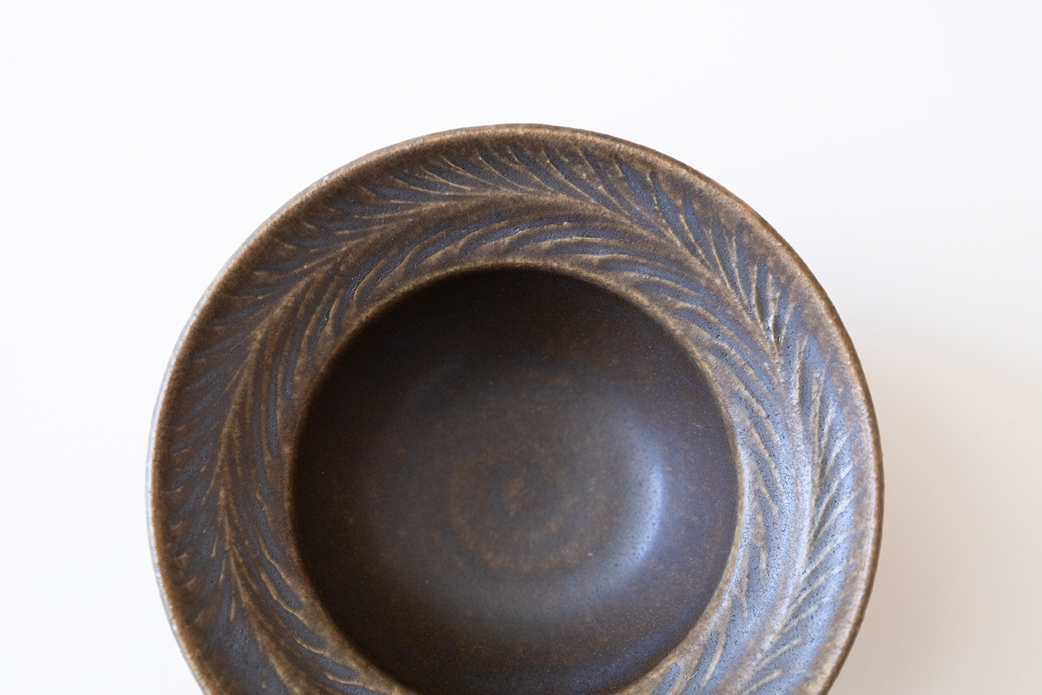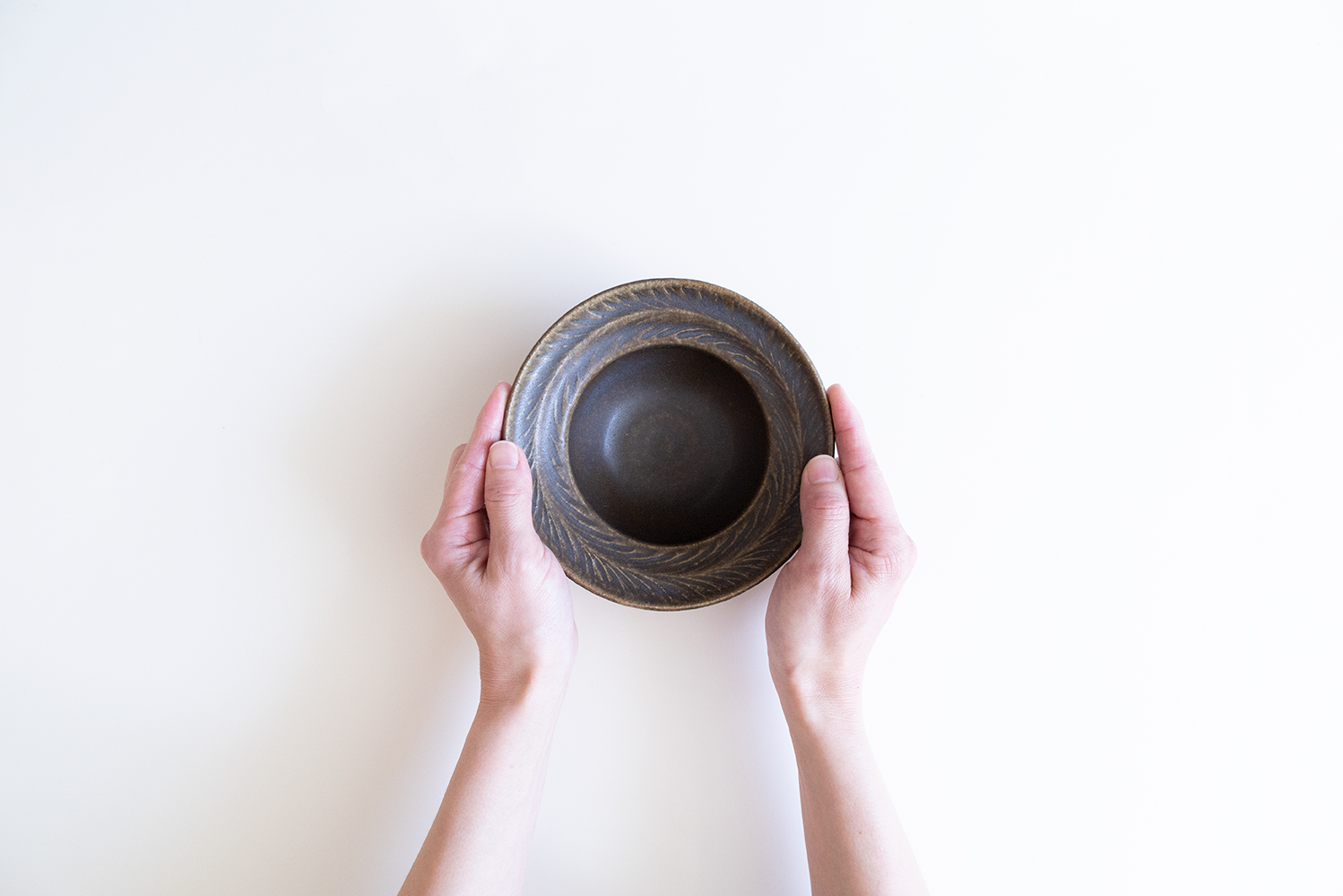 リムの部分に葉のようなしのぎが施されています。浮き出たしのぎは優しい印象と上品さを感じさせます。サラダやスープなど幅広くお使いいただけます。重なりも良く収納も便利です。