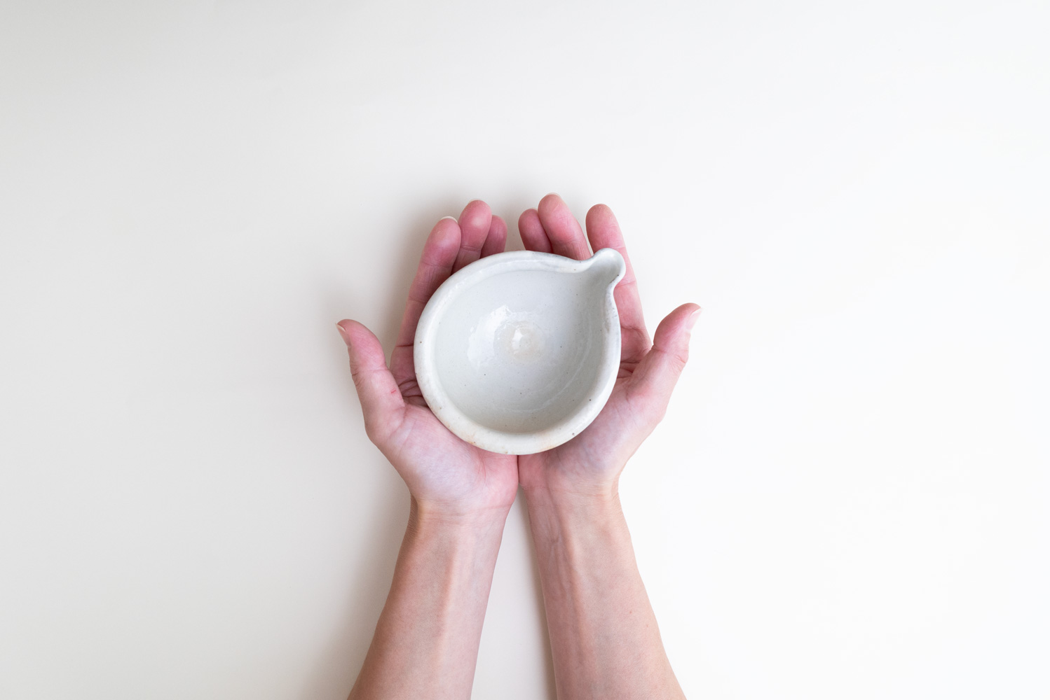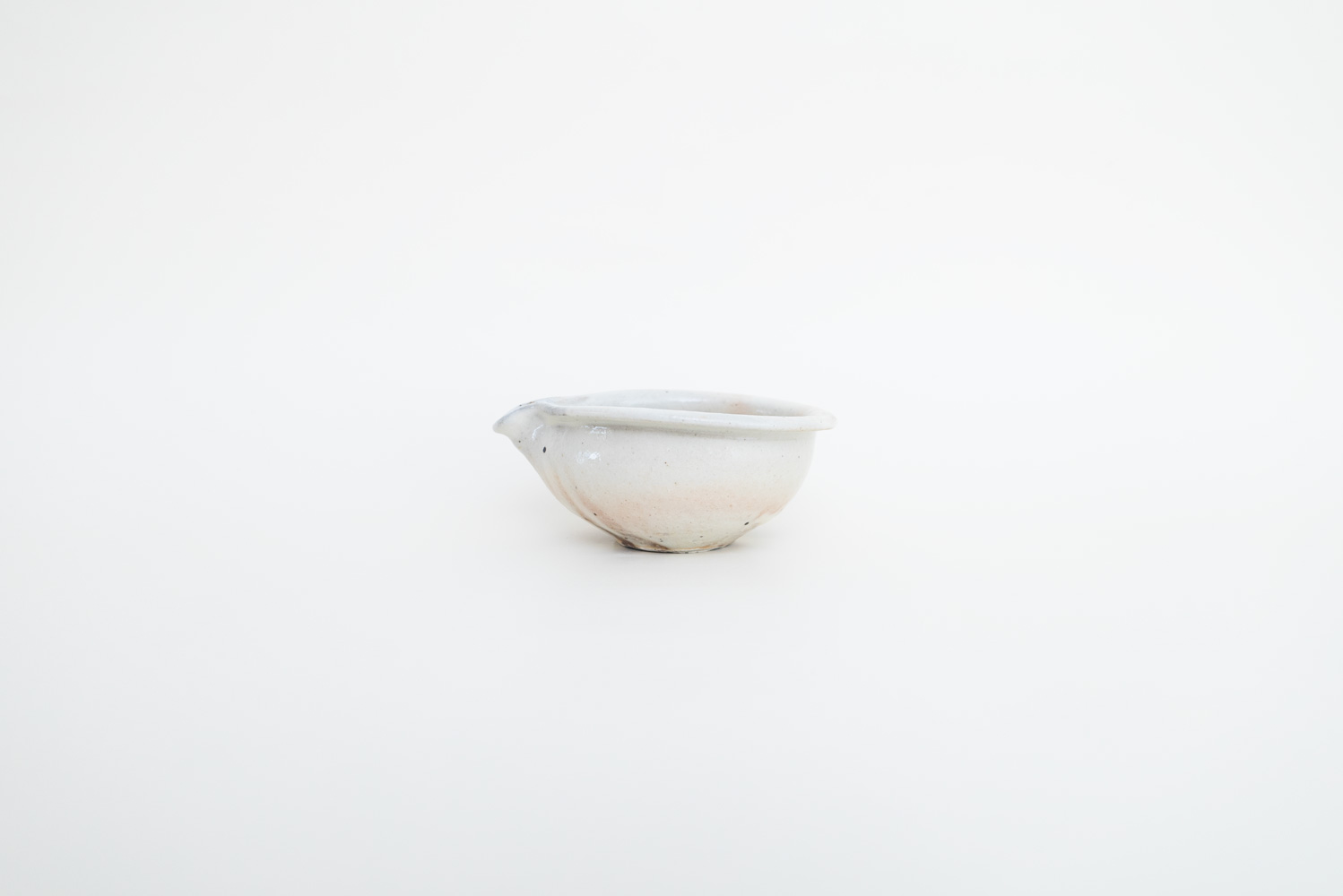 やわらかな白磁に鉄粉が点々と表情を添える、片口の小さなボウルです。ぽってりとした厚みと丸みを帯びたフォルムが、手にやさしく馴染みます。豆サイズながら、タレやソース、ドレッシングを入れたり、お酒の片口として使ったりと、幅広いシーンで活躍。口縁のわずかな色づきや釉薬の景色が、ひとつひとつ異なる表情を見せてくれるのも魅力です。