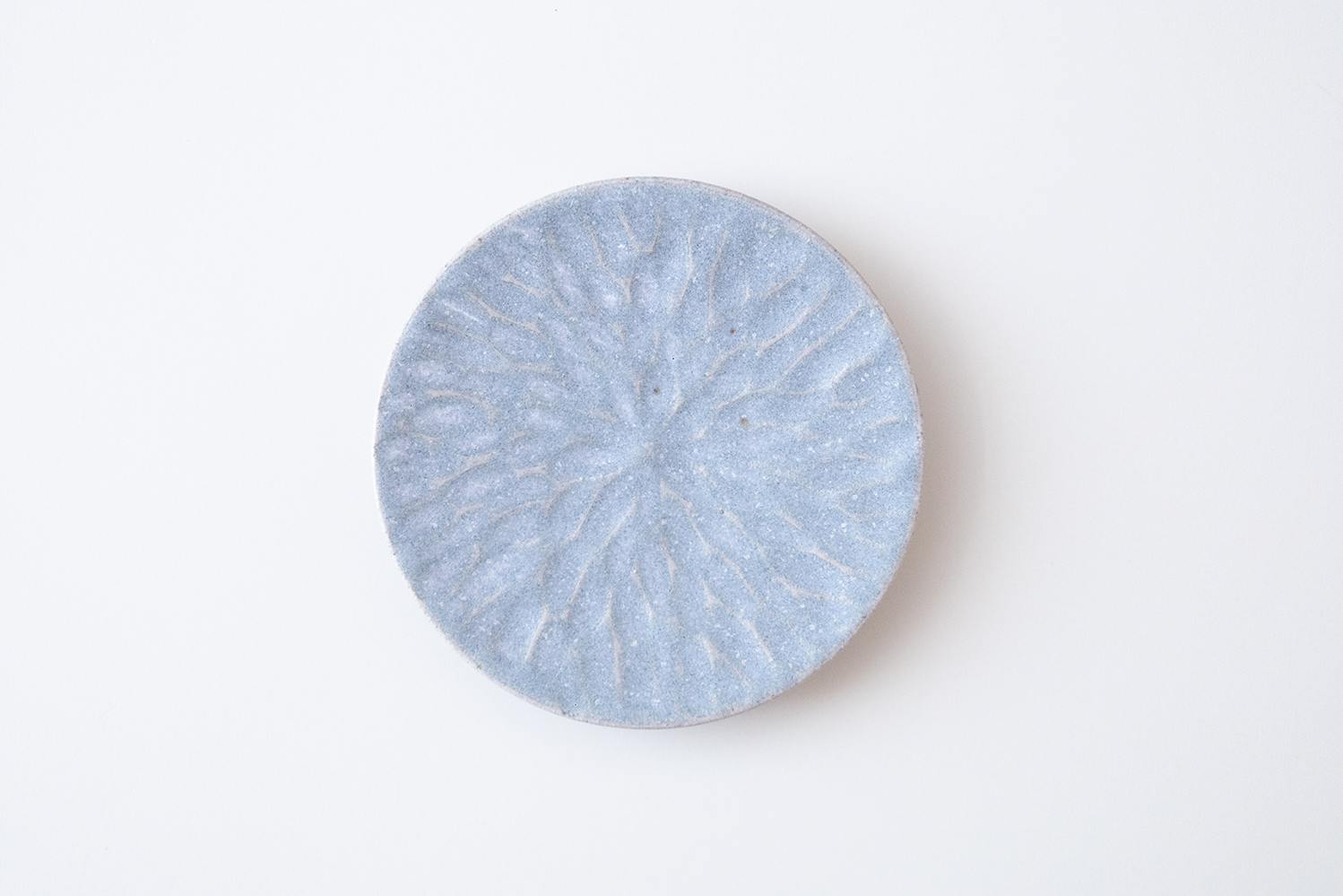 LEAF VEINとは葉脈を意味する言葉です。ビカクシダのリドレイの葉をイメージした鎬を入れているそうです。柔らかな淡い水色の釉薬は錆色とはまた違った鎬による変化を見せてくれます。