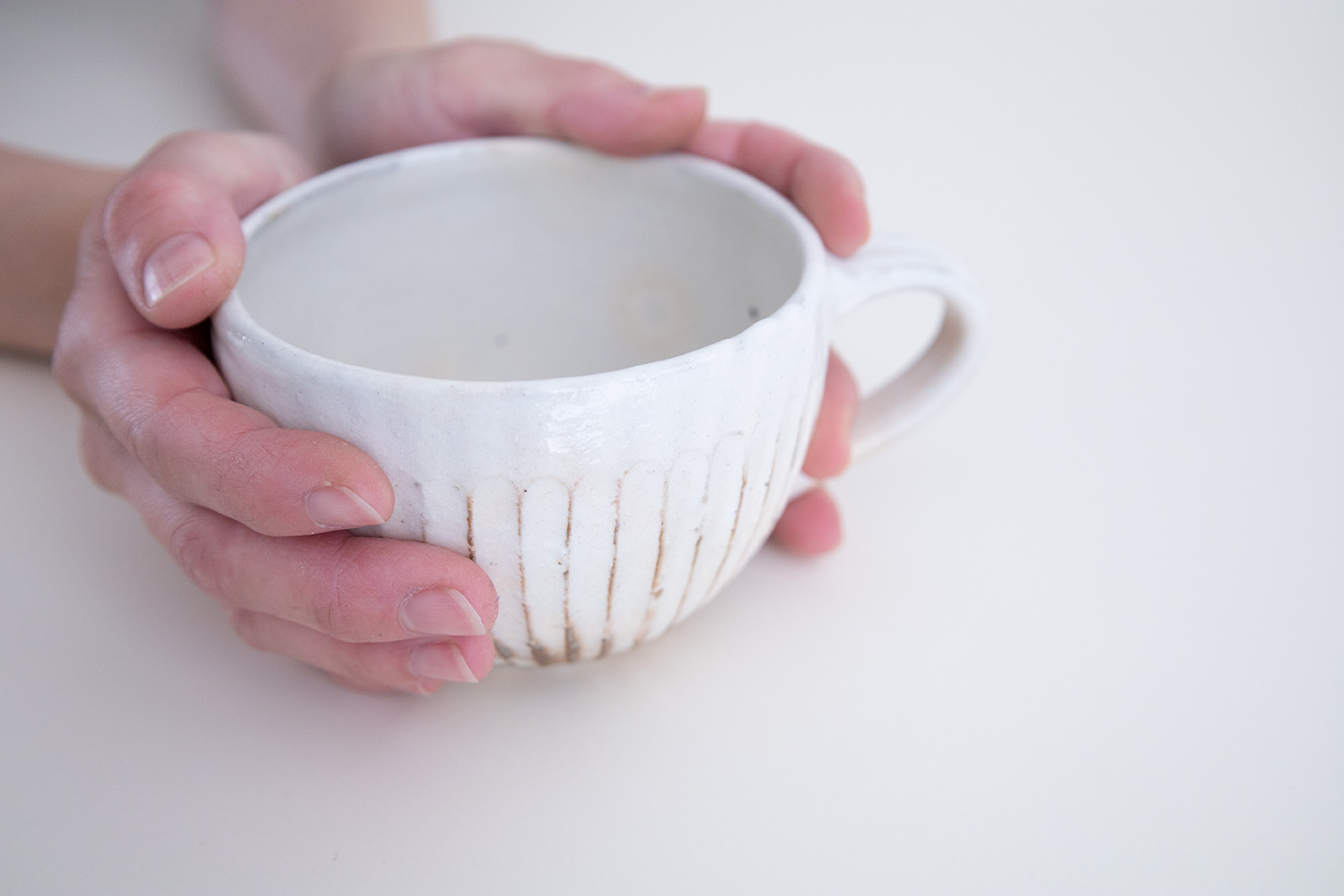 シンプルで使いやすいサイズのスープカップです。手に馴染み、つい手に取ってしまうサイズ感です。