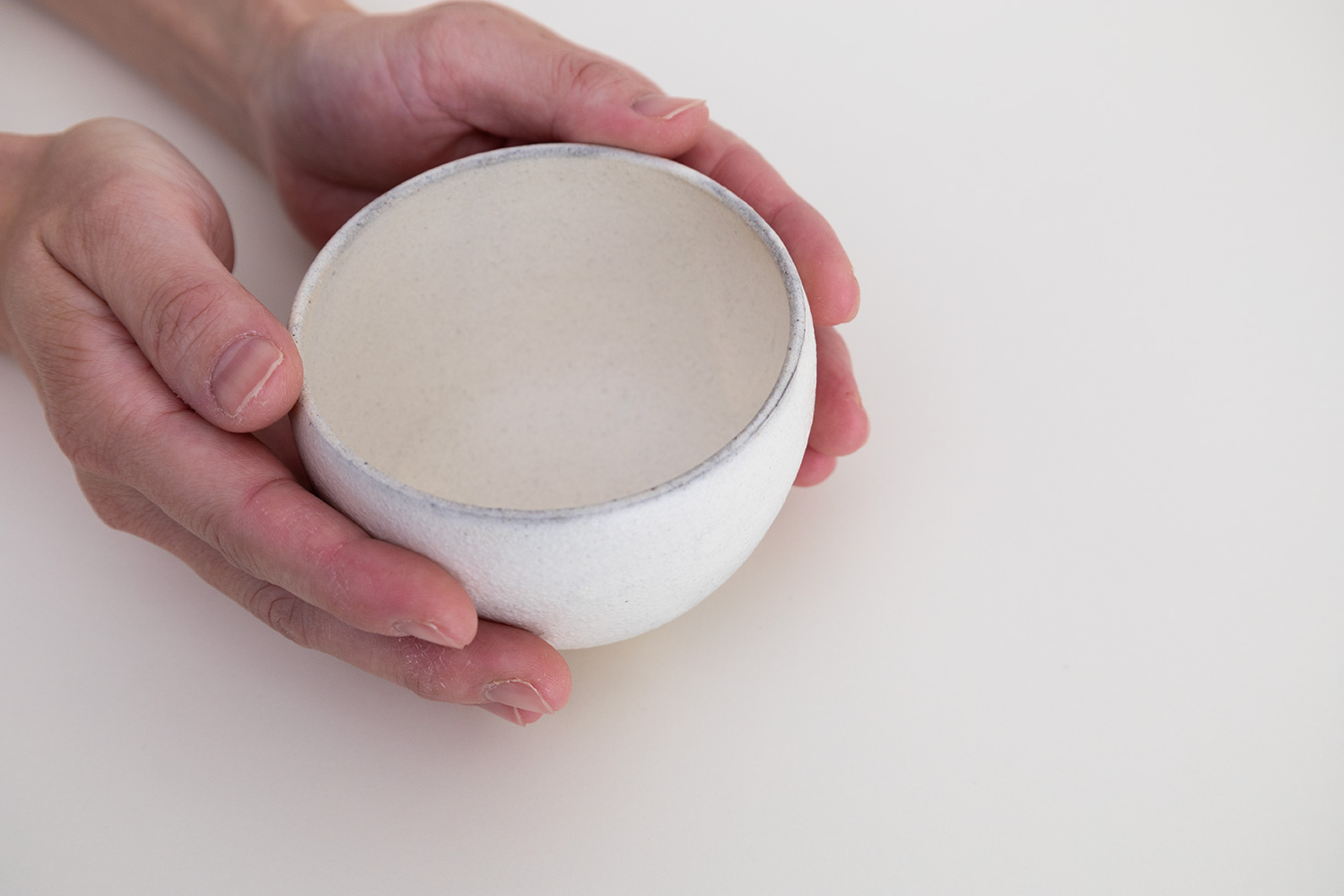 卵のような手触りが心地よい、柔らかでマットな粉引のうつわです。プロの料理から家庭料理まで、盛り付けるお料理を上品に引き立ててくれます。お湯呑みとして、または小鉢、デザートカップとして、色々と出番の多い使いやすい大きさです。