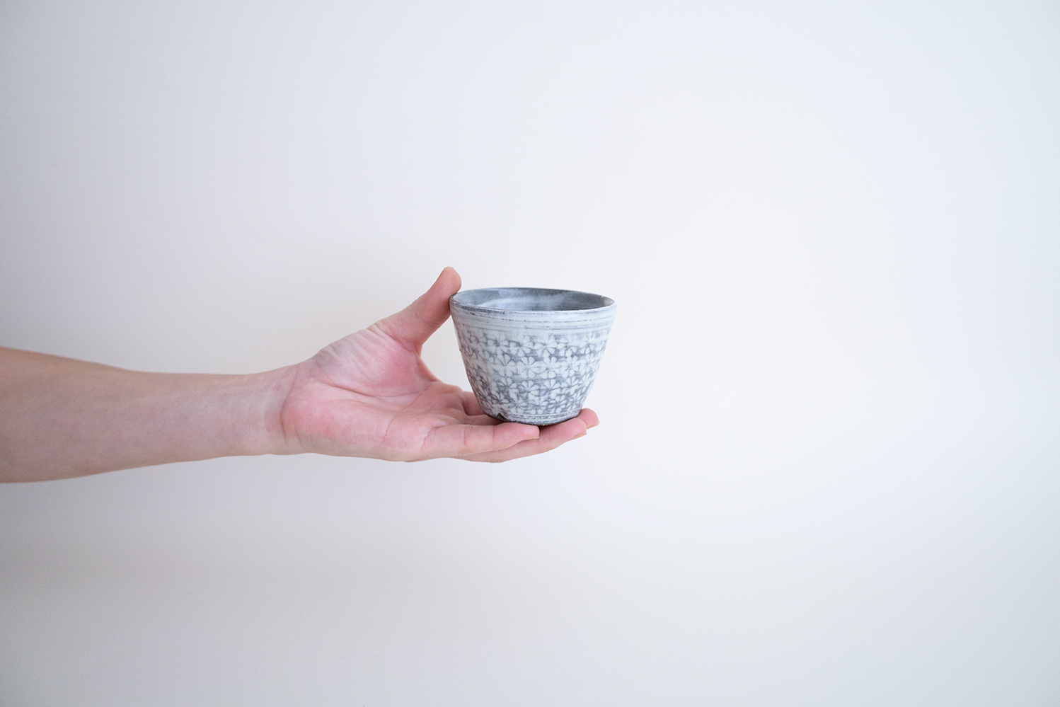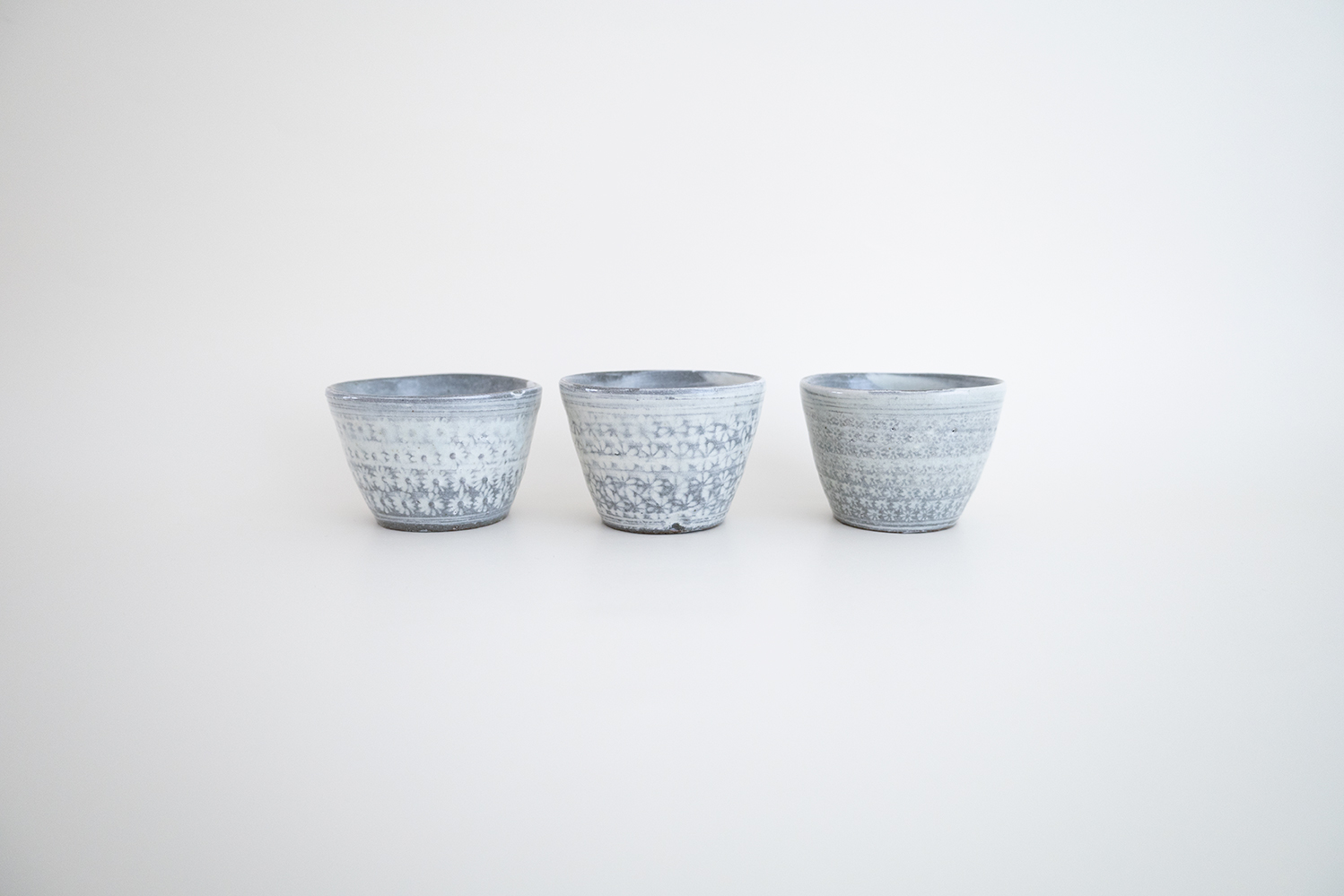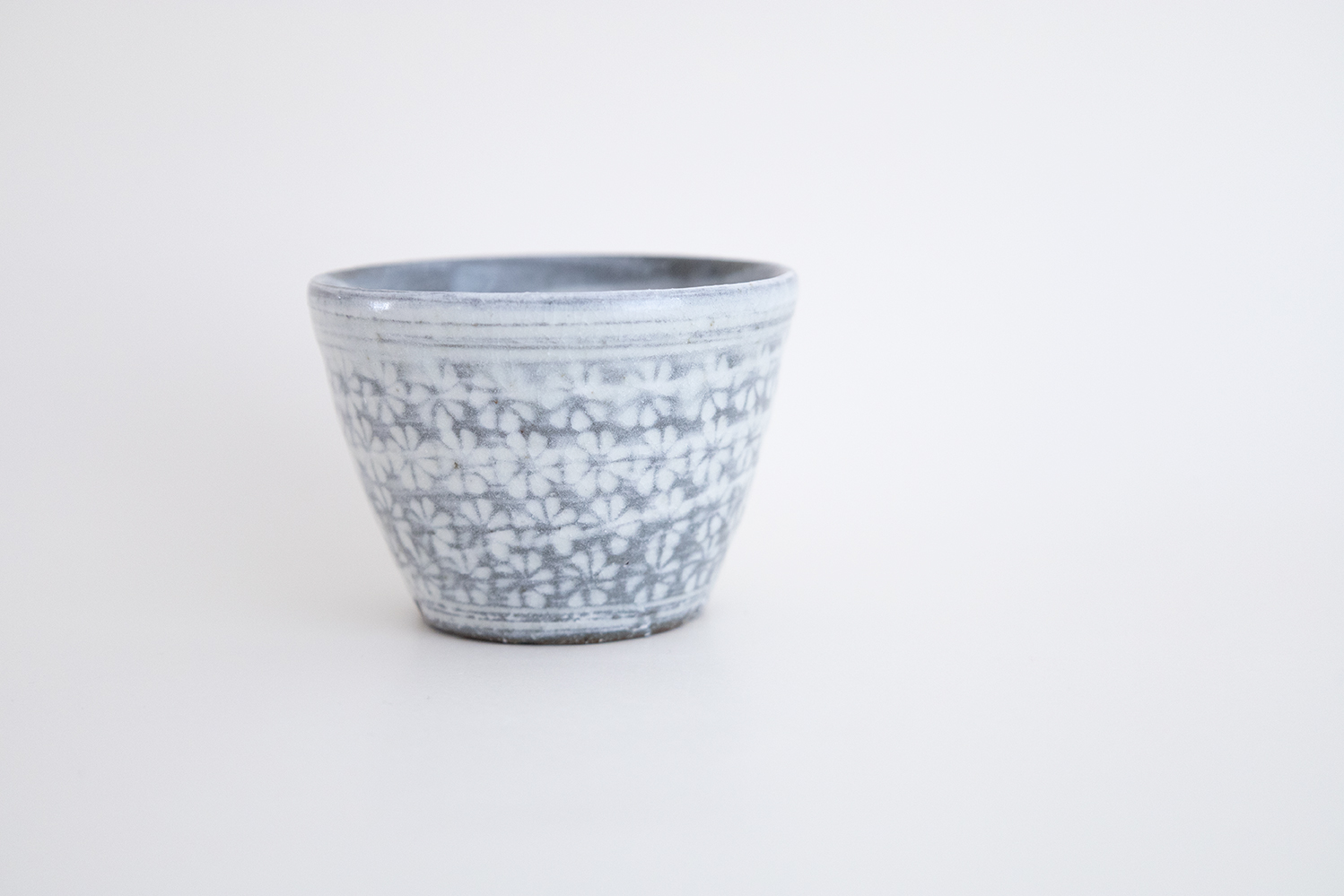 三島の蕎麦猪口です。内側の刷毛目模様も素敵ですね。少し小ぶりなところも手のひらに収まる感じがかわいい器です。