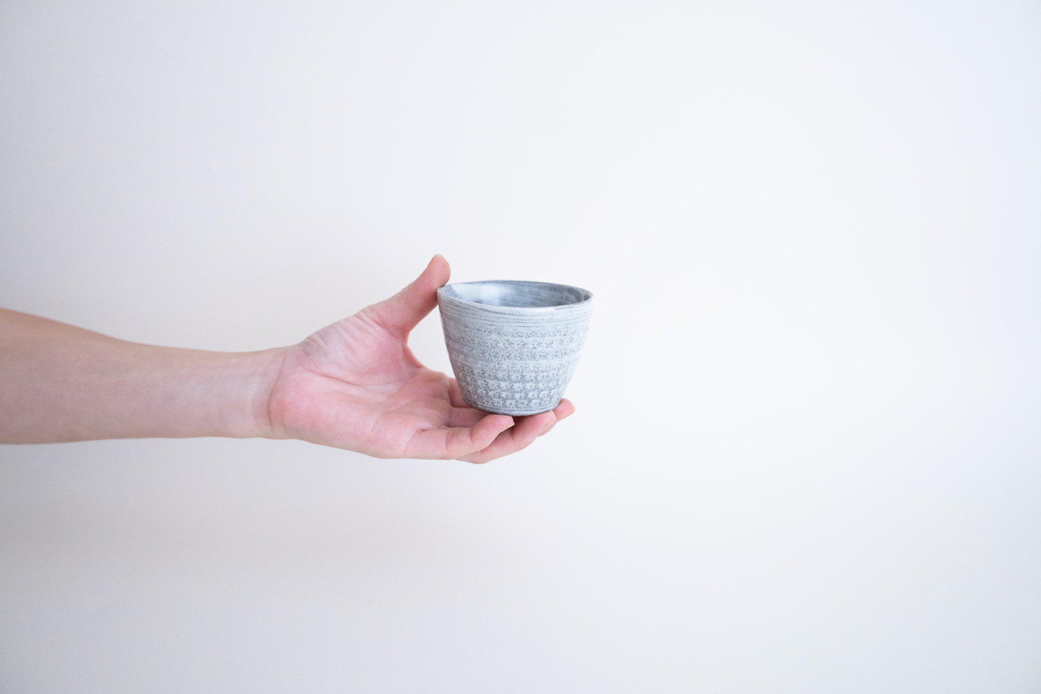 三島の蕎麦猪口です。内側の刷毛目模様も素敵ですね。少し小ぶりなところも手のひらに収まる感じがかわいい器です。