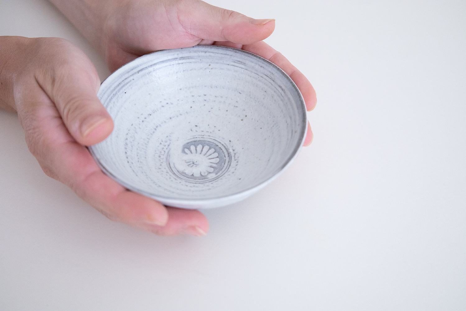 白土の象嵌模様が特徴的な三島。点や線、印花の配置や間隔に作家個々の特徴が存分に現れるうつわであると言えるのではないでしょうか。伝統的な印象のものから、新しい形や印花を取り入れた現代的なものまで、鈴木さんの魅力が存分に詰まった作品です。
