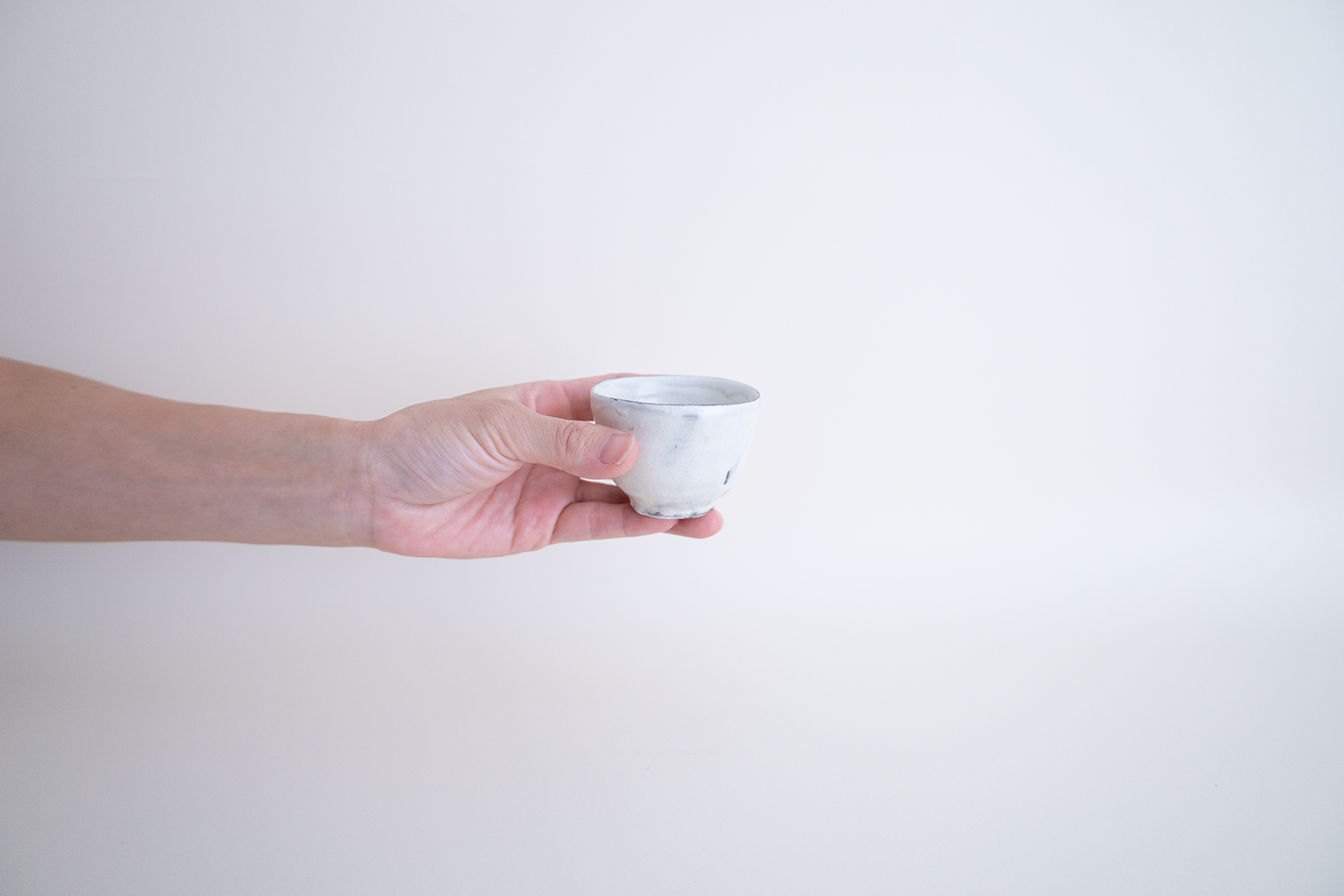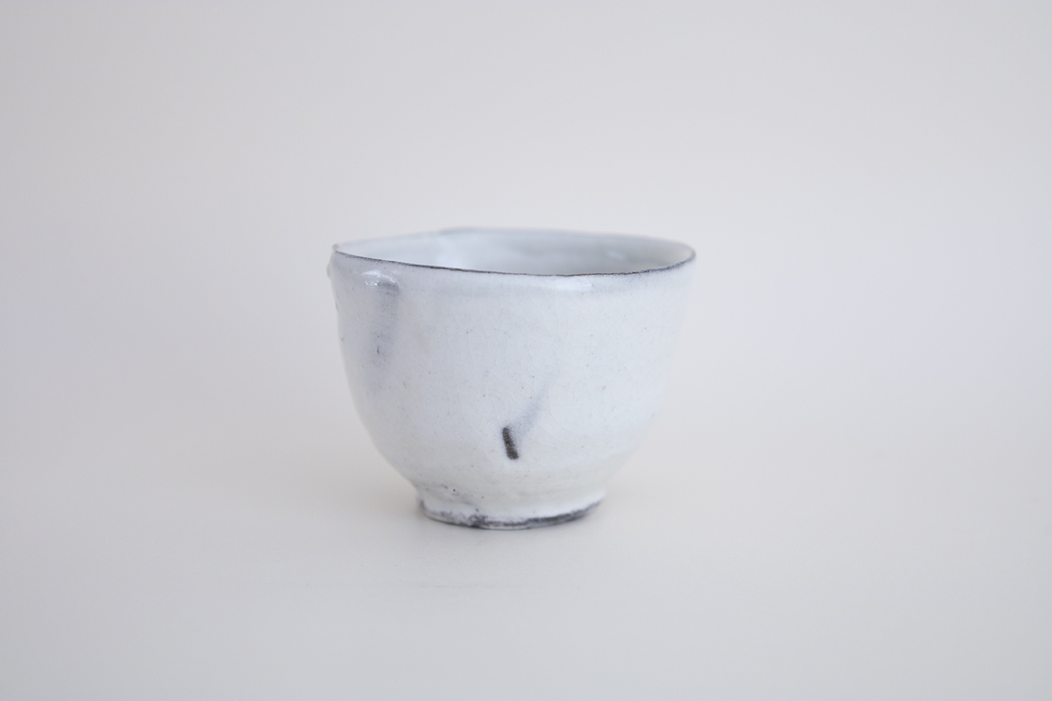 うっすらと淡い青味のある粉引。細かく入った貫入も大変美しい盃です。
