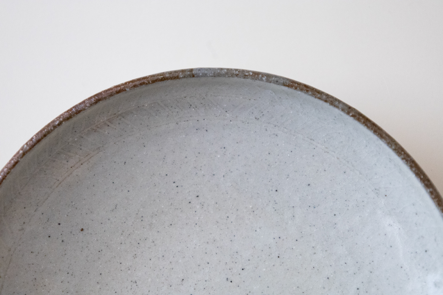 内側にほんのりと浮かび上がる繊細なしのぎの紋様が、シンプルなシルエットをさらに上品に演出しています。縁に立ち上がりがあるので汁気のあるものも安心です。和食、洋食、和菓子、洋菓子…様々なシーンで活躍してくれそうですね。