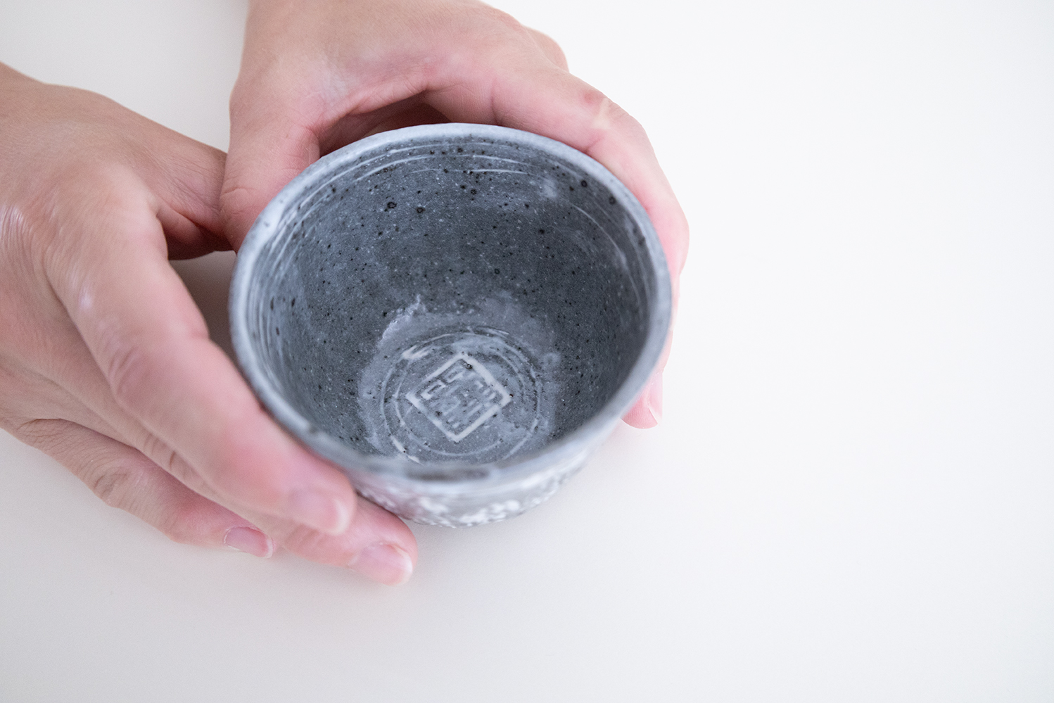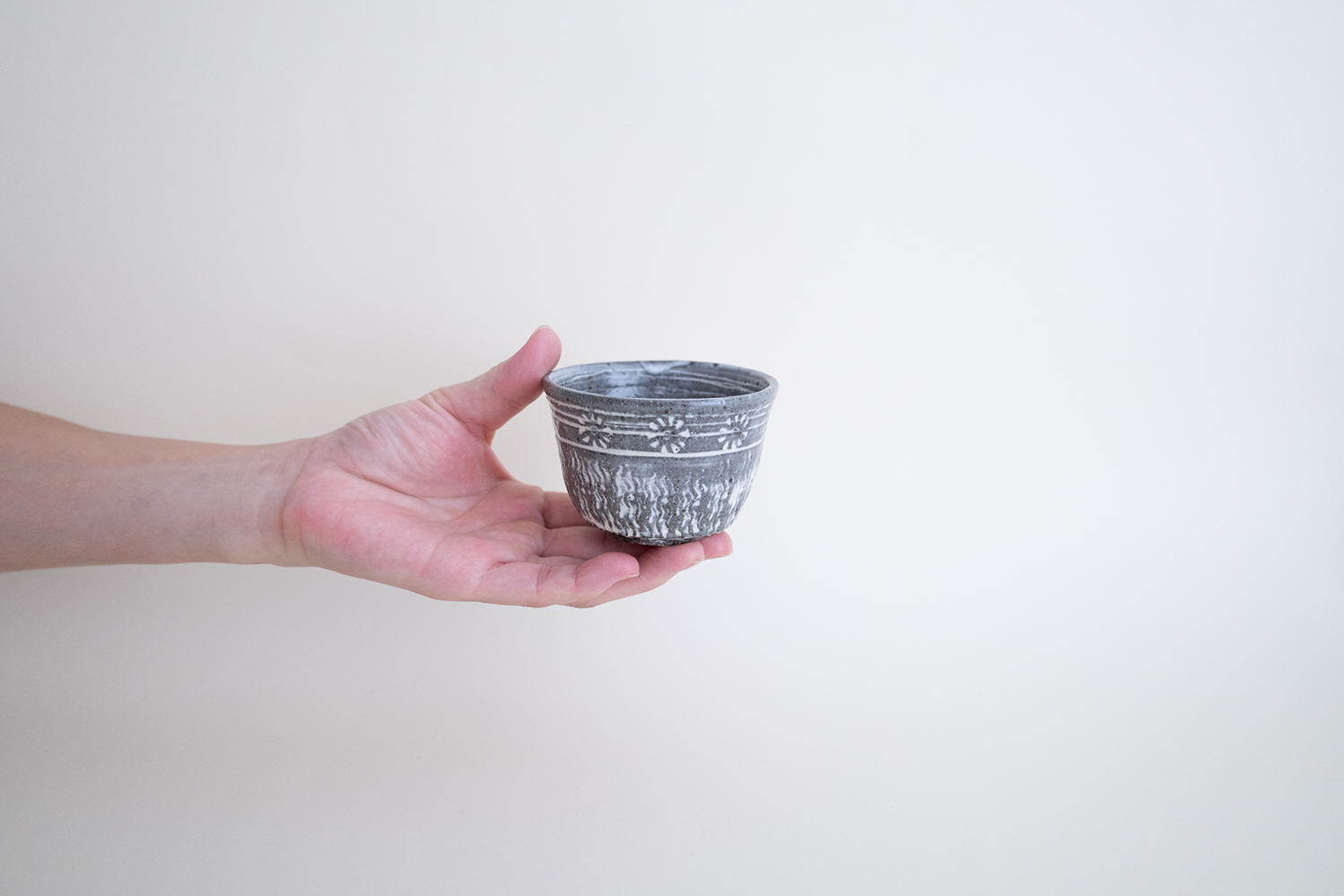 松本さんの新作、三島の蕎麦猪口です。印花に使われてる印はご自身が製作されており、松本さんらしさが全面に現れている三島となっています。さらに、しっかりと焼き締めることで香りが移りにくくなっています。蕎麦猪口としてはもちろん、コーヒーやお茶、お酒などの飲み物や、小鉢として使っても素敵です。
