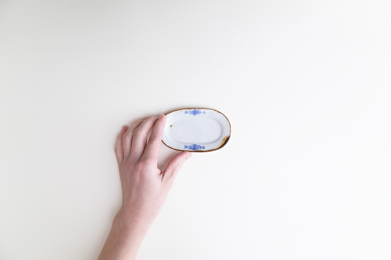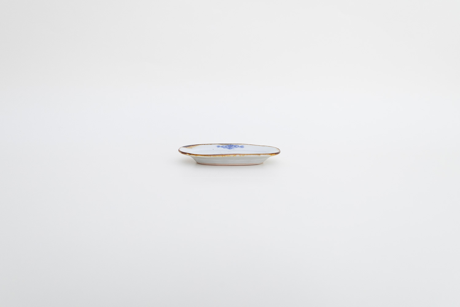 彫られた花の紋様に柔らかに滲む青色と、諸処に見られる細やかな手仕事により、小さくても存在感のある豆皿に仕上がっています。