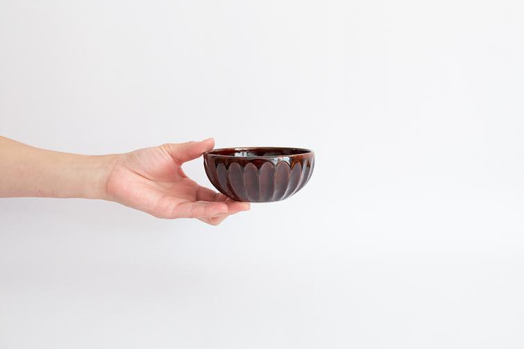 飴色が美しいしのぎの小鉢です。サラダボウルや冷奴などの一品物にぴったりです。正確に彫り込まれたしのぎの手触りをお楽しみください。