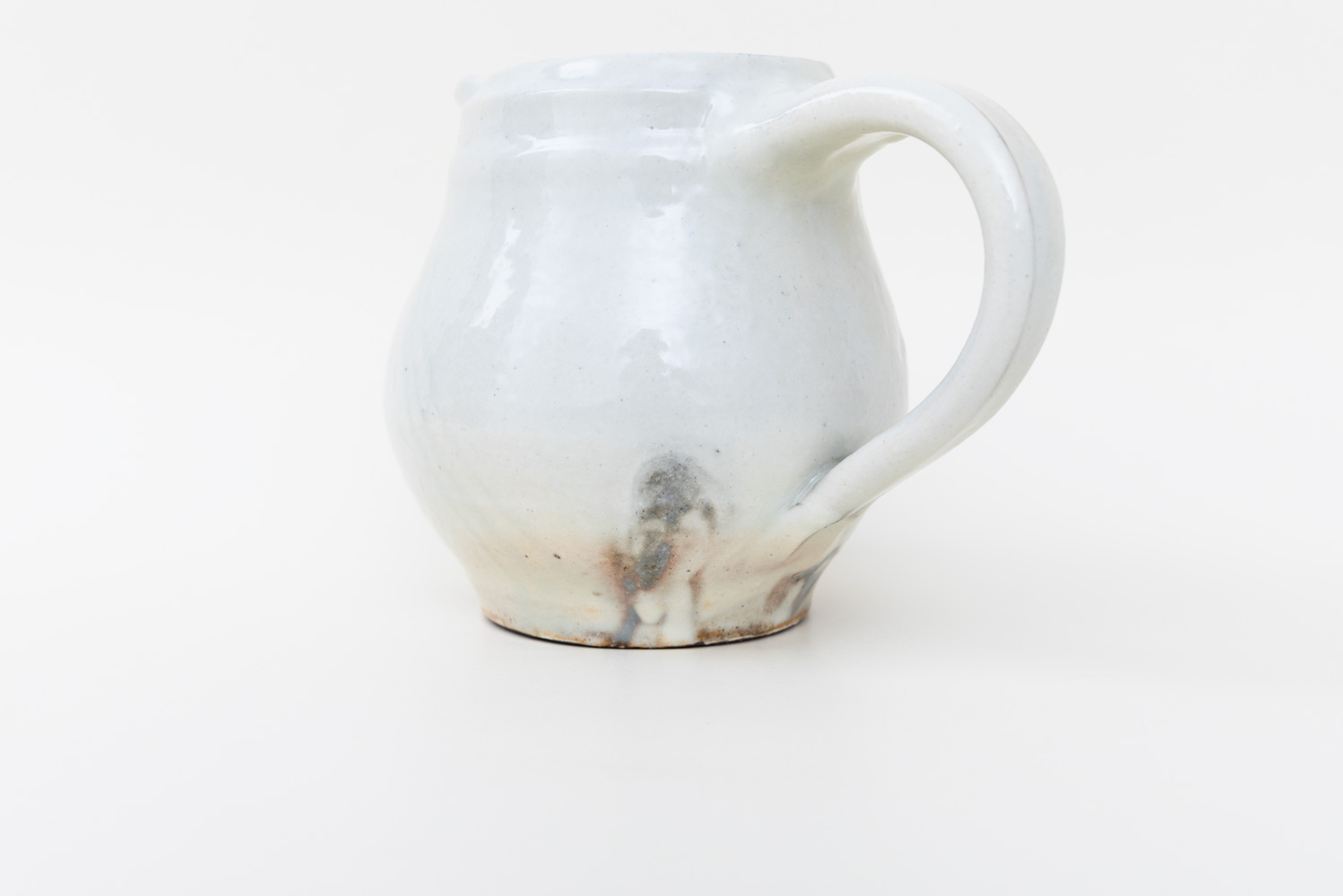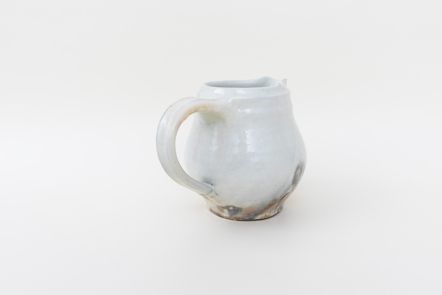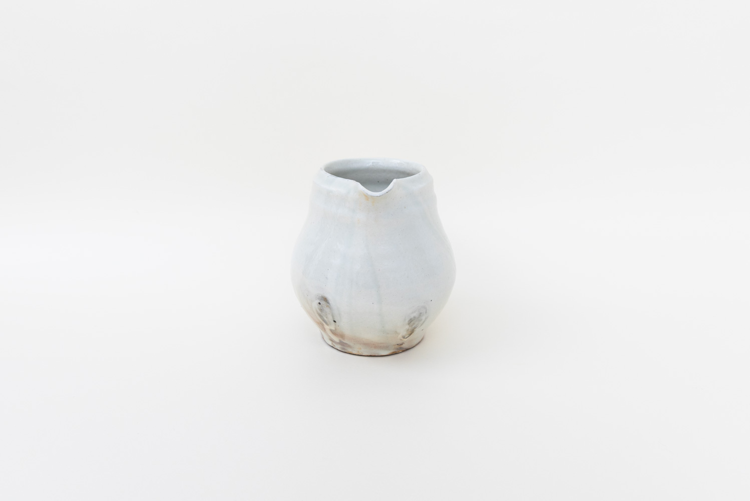 鉄散のピッチャー小です。表面の下から優しく素朴な土味が見え隠れする深みのある白地は、鮮やかな花も素朴な植物も、しっとり清楚な装いに仕上げてくれます。花器としてではなく、麺つゆや飲み物など使い方は自由です。