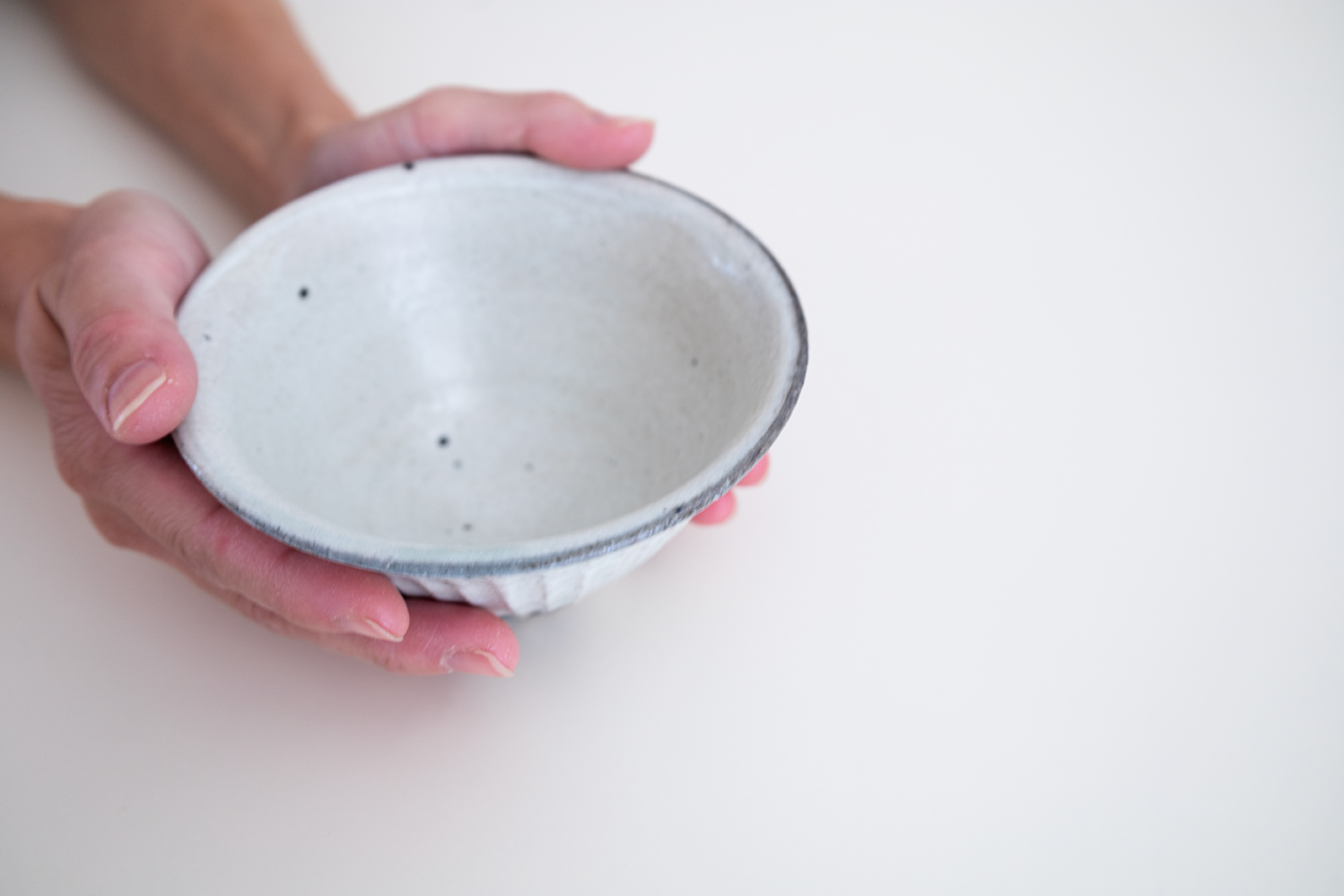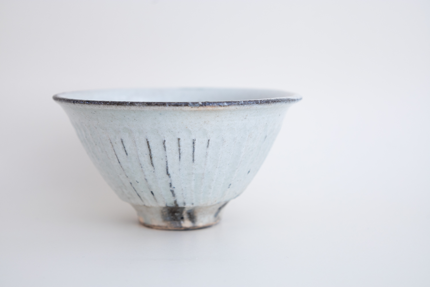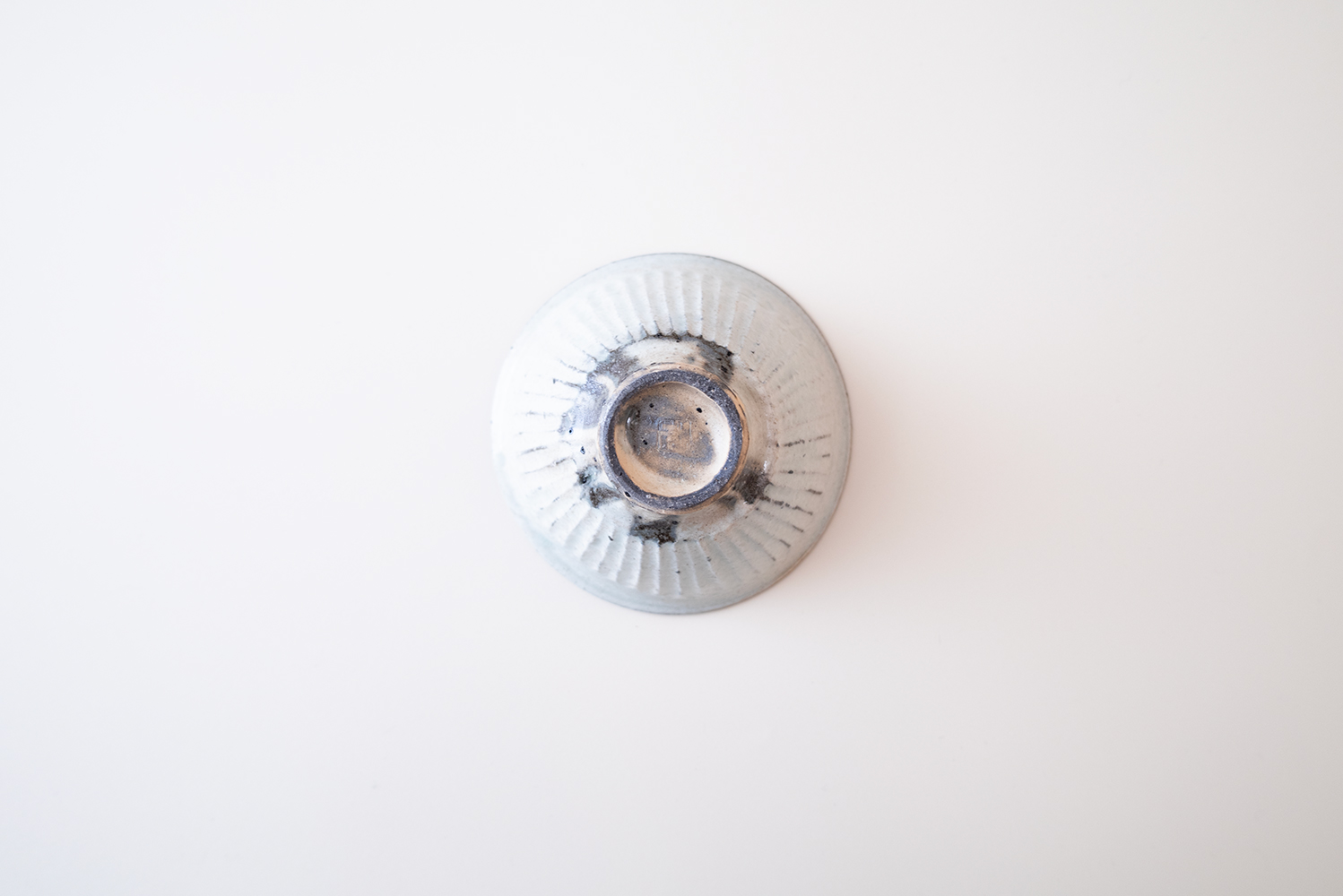 しのぎが美しい飽きのこないスタンダードな形めし碗です。土らしさが残る触感や景色と、ほんのりと淡い青が絶妙に合わさった青灰(せいはい)。焼成の方法が違うだけで、釉薬などはキナリの器と全て同じなのだそう。キナリ同様、甘すぎない雰囲気に纏めてくれるので、和食などの素朴なお料理にも良く似合います。大・小の2種類のサイズと、鉄散・キナリ・青灰の3種類があるのでご夫婦やご家族で揃えても良いですね。