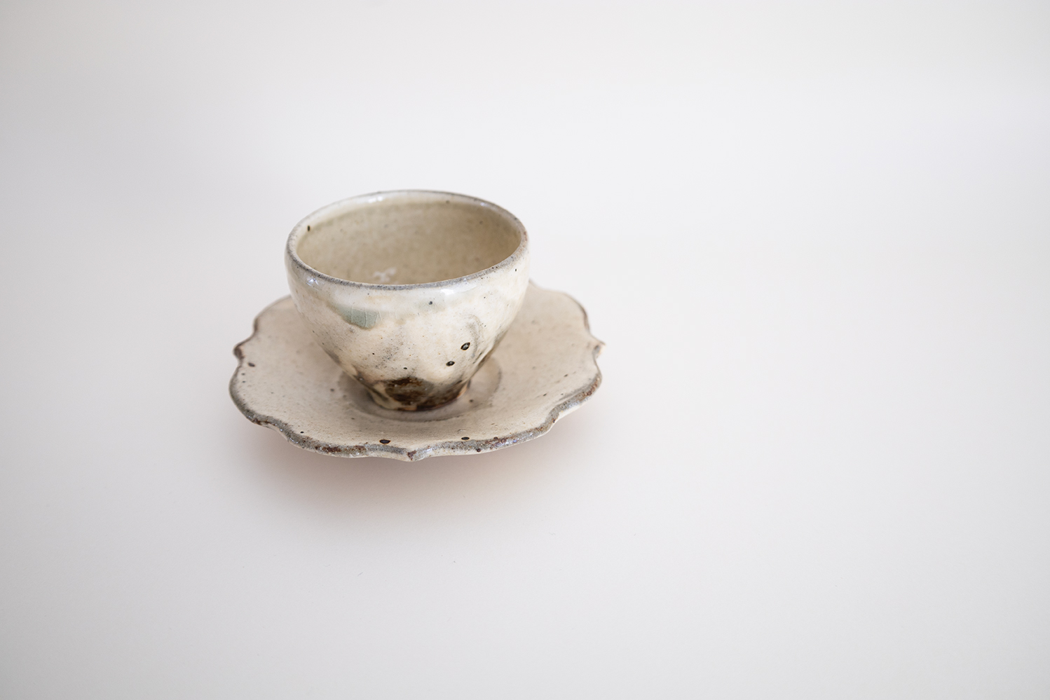 小ぶりなサイズが上品で可愛らしい茶杯です。潔いまでにシンプルな形はお茶だけでなく、ぐい呑みや豆鉢にも使えそうですね。土らしい温かみを感じるほんのり淡い黄色は、甘すぎない雰囲気に纏めてくれるので、和食などの素朴なお料理にも良く似合います。