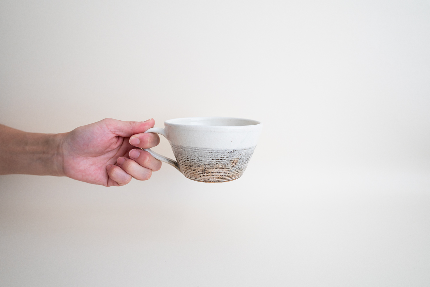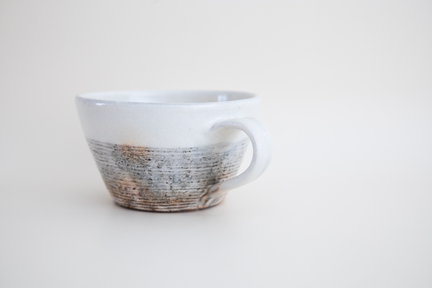 シンプルな切立の形に施された横彫が良いアクセントになっています。鉄散の器は、表面の下から優しく素朴な土味が見え隠れする深みのある白地に、敢えて加えた鉄の黒い粒々が程よいアクセントとなり、独特の趣を作り出しています。