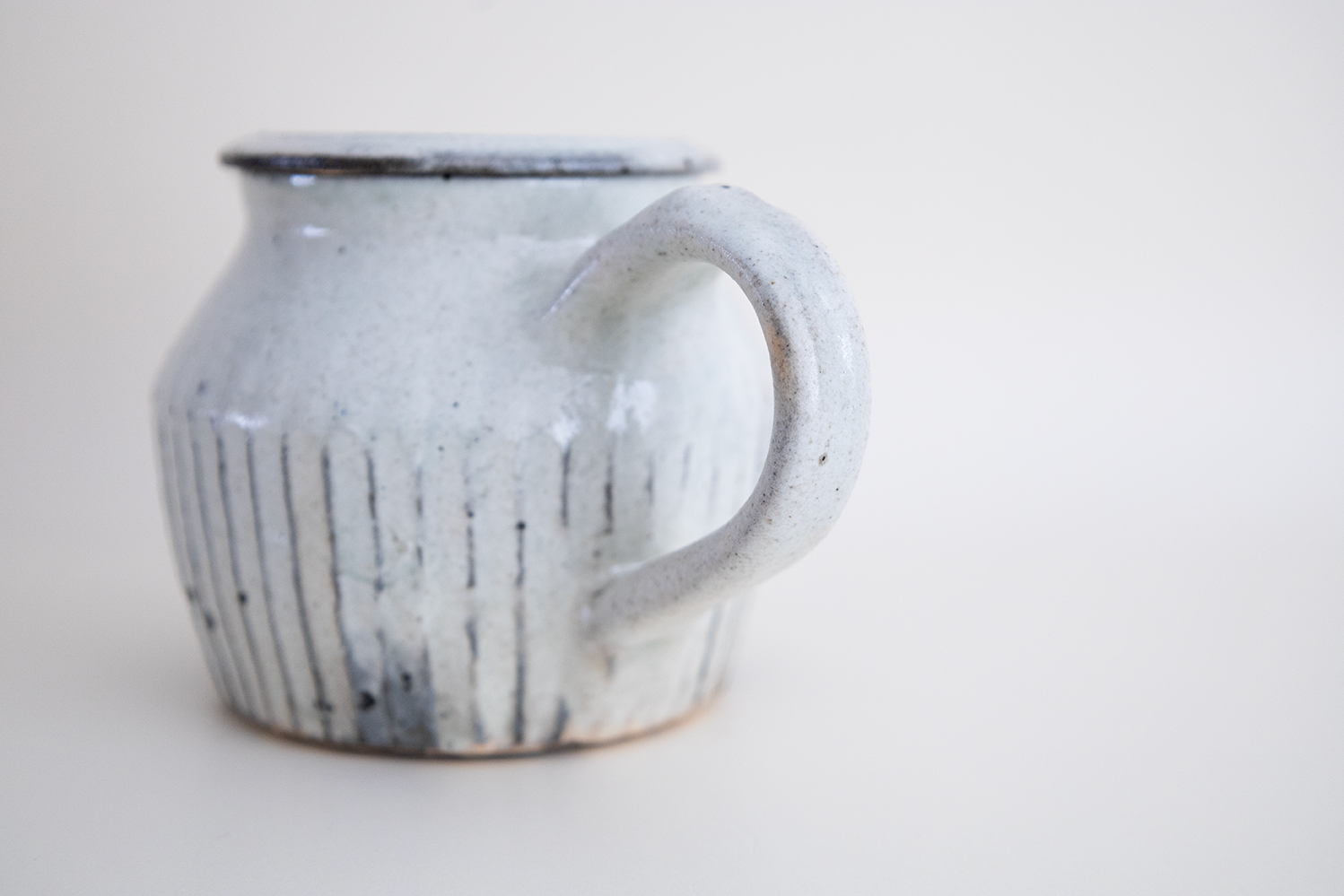 しっかりと安定感があり、容量もたっぷりと入ります。土らしさが残る触感や景色と、ほんのりと淡い青が絶妙に合わさった青灰(せいはい)。焼成の方法が違うだけで、釉薬などはキナリの器と全て同じなのだそう。キナリ同様、甘すぎない雰囲気に纏めてくれるので、和食などの素朴なお料理にも良く似合います。